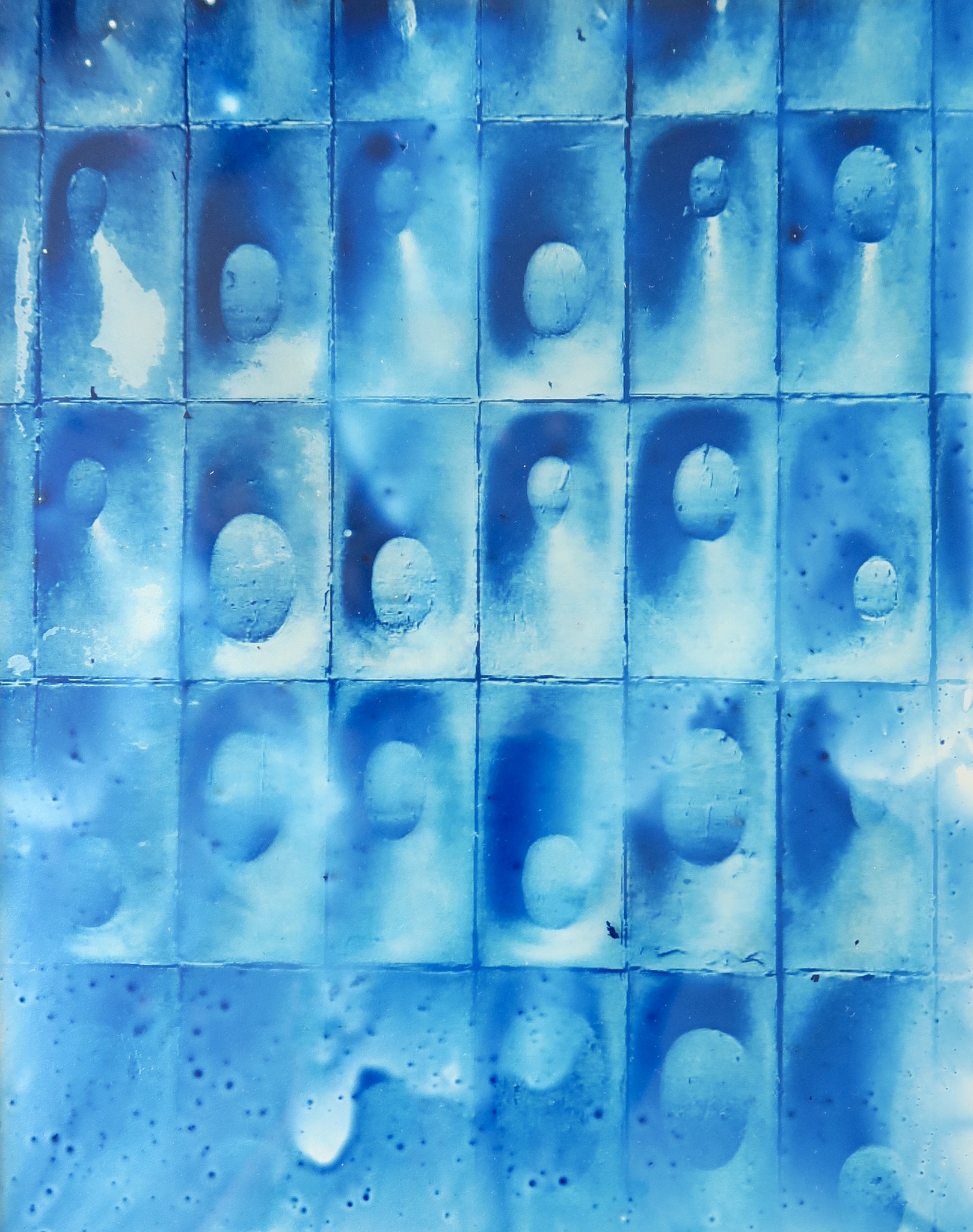Mooi patronen op een muur. Cyanotypie op glass