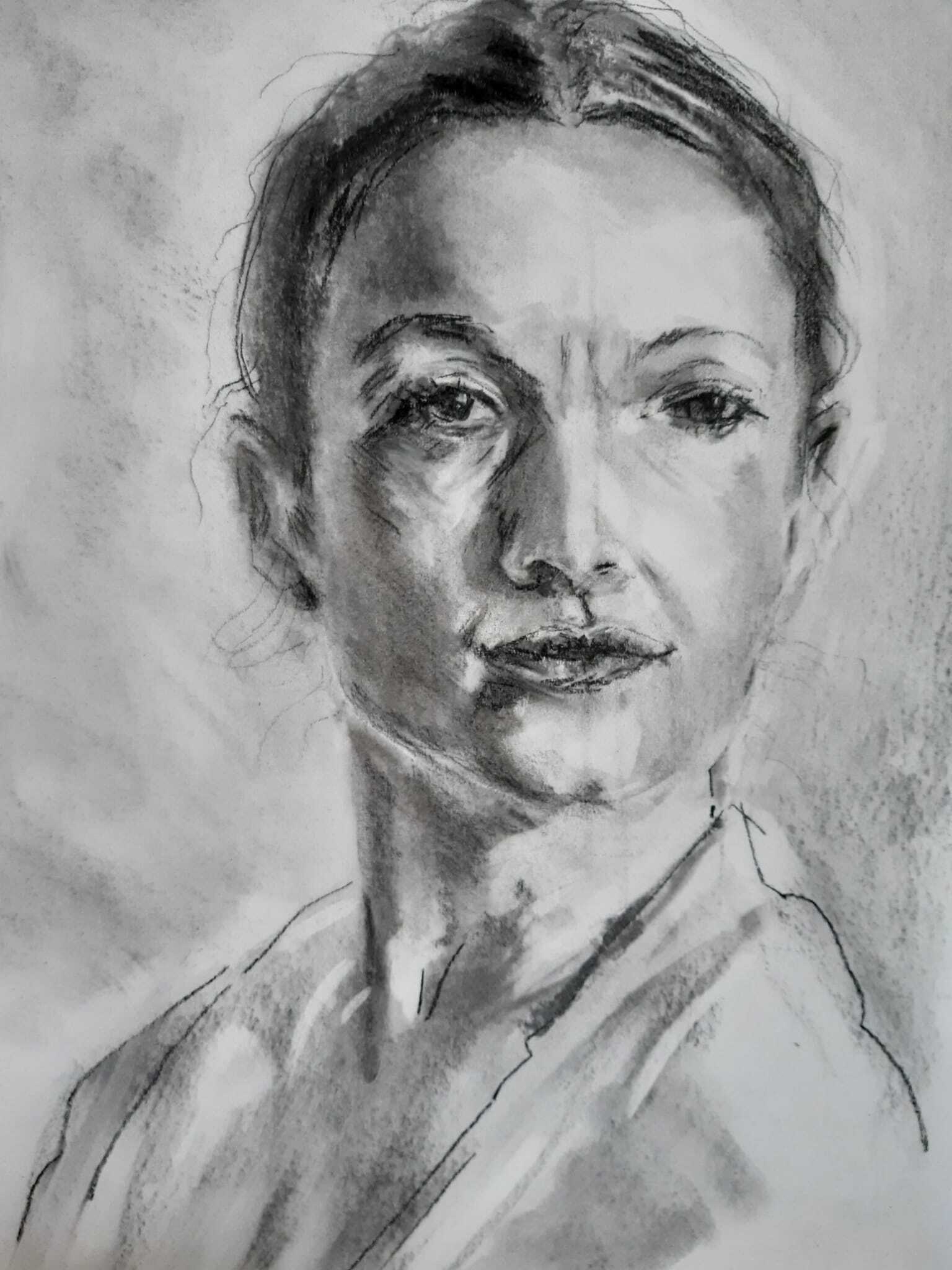 Houtskool op tekenpapier, 30 bij 40 cm.