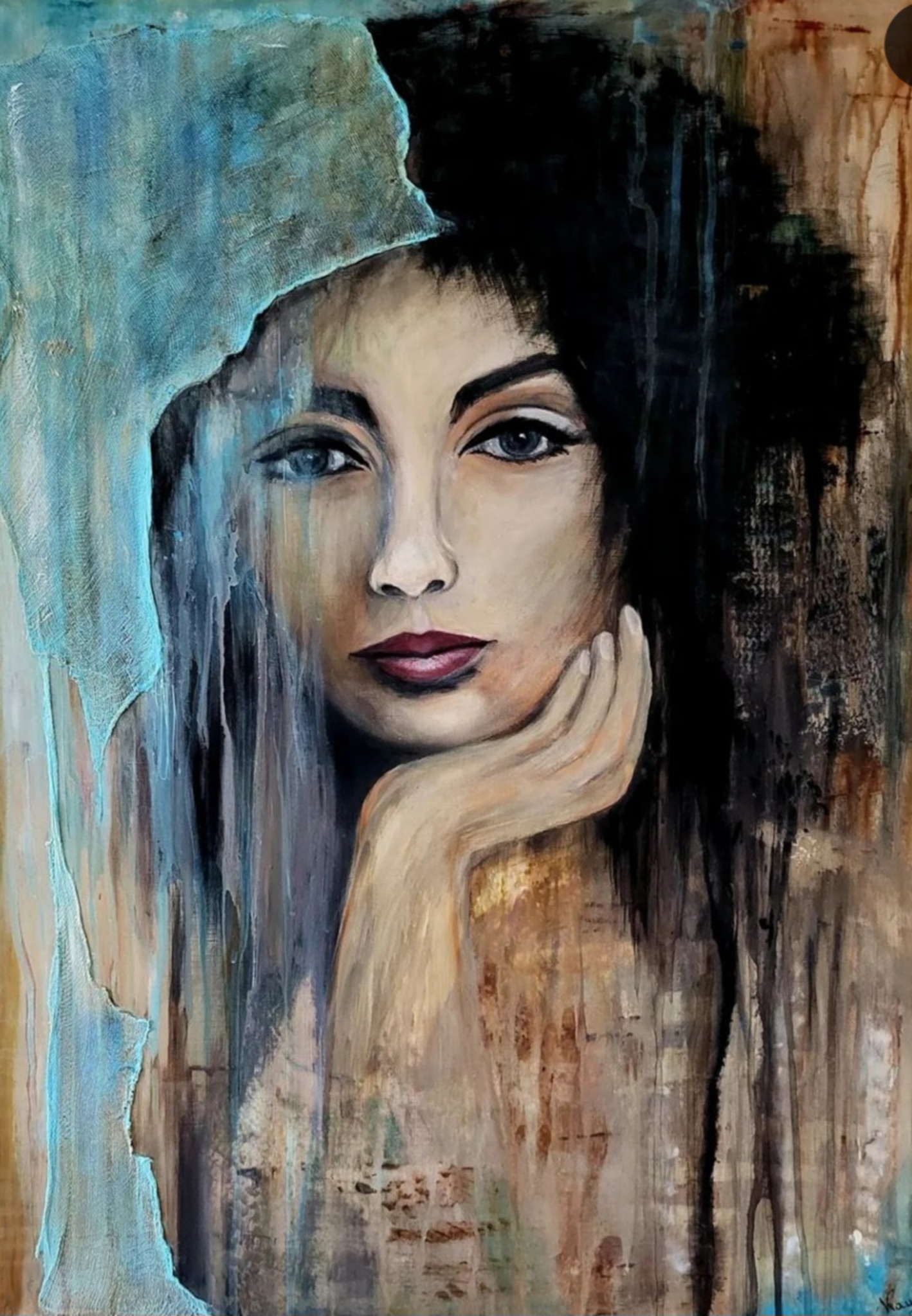 Mixedmedia Vrouwenportret Vrouwengezicht Epoxy Krijtverf