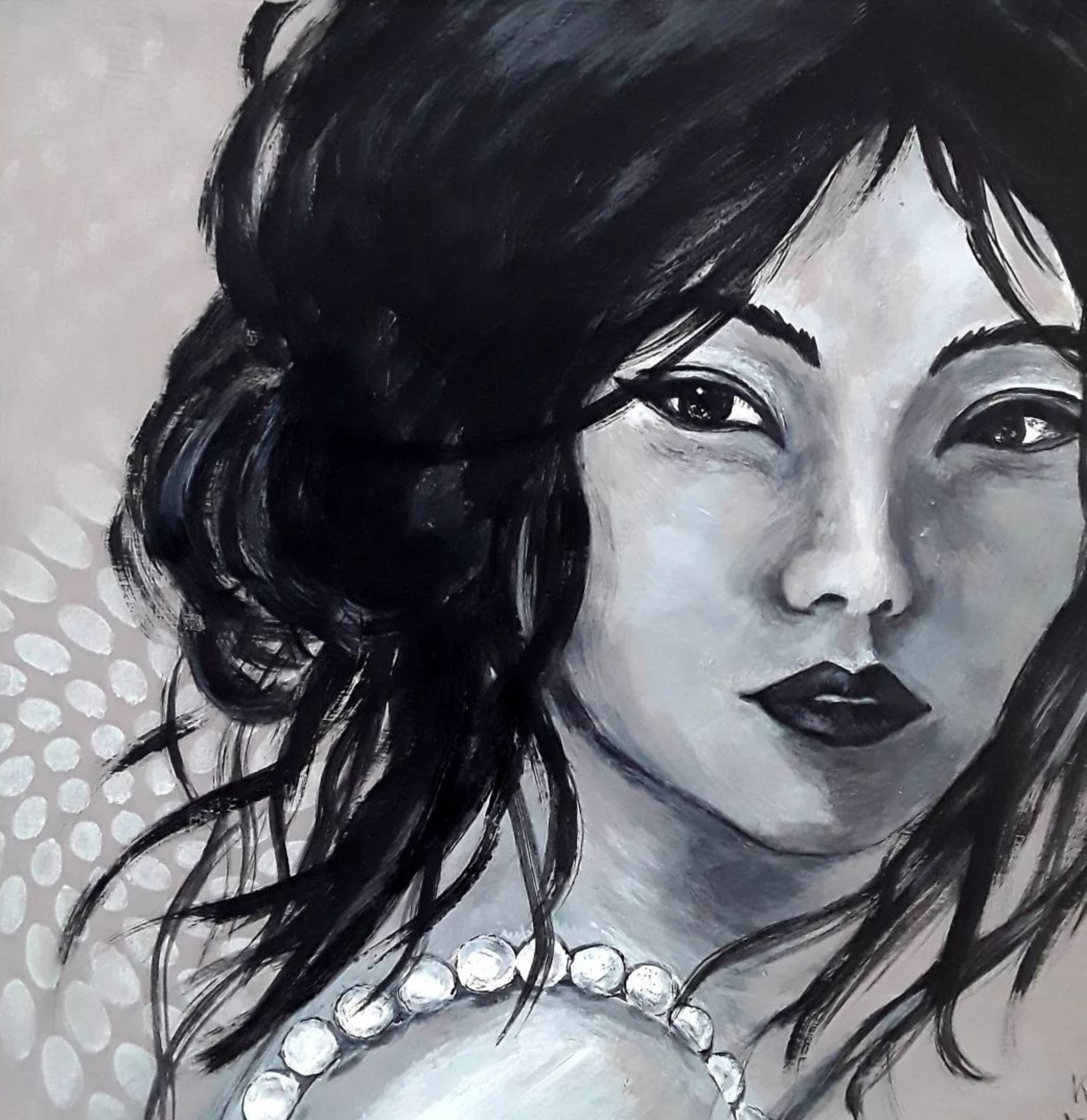 Acrylverf Zwartwit Oosters Parels Vrouwengezicht Houtenpaneel Vrijestijl