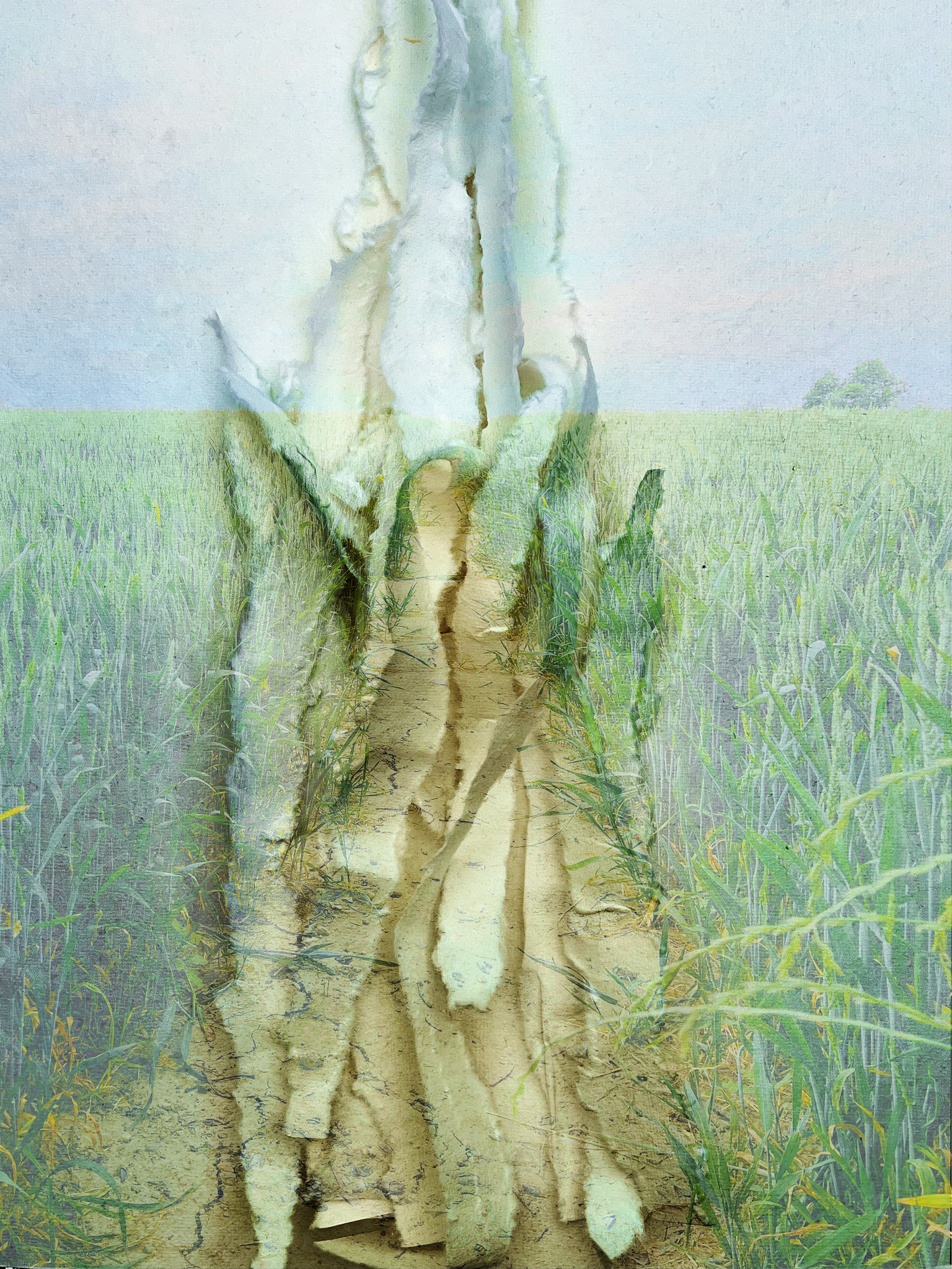 Groen Ritme Aarde Land Leven Levenspad Print Chaos Contrast Graan Pad Mixedmedia Creatief Turbulent Indrukken Droogte Gewas Ondernemen Bewegenlijk Verscheuren