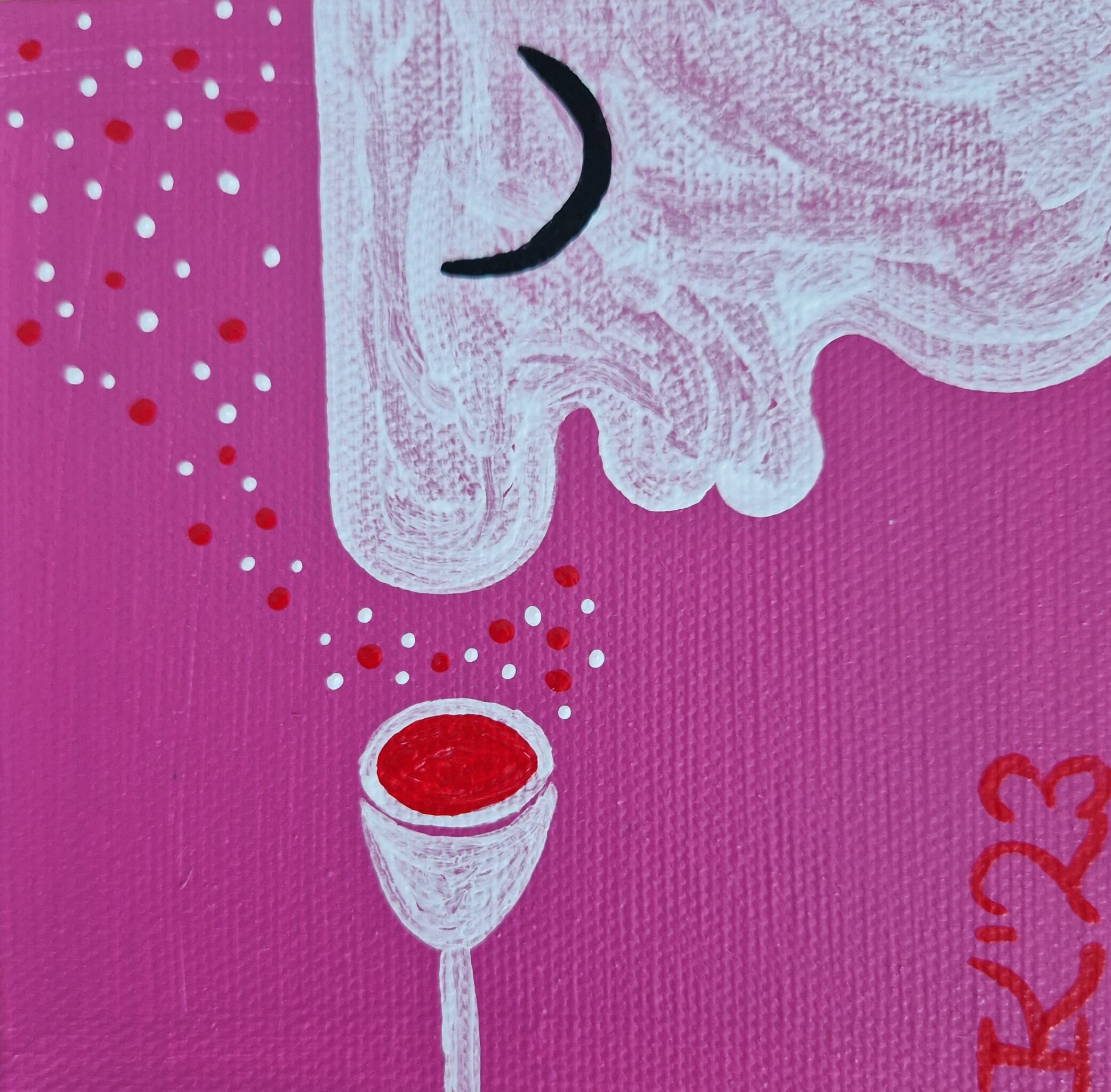 Acrylverf op katoen, 10 bij 10 cm, voorzien van haakjes en draad aan de achterkant, zodat je het schilderijtje makkelijk op kunt hangen. Pictoright. De prijs is zonder verzendkosten. Als abonnee op mijn maandelijkse nieuwsbrief -zie linksonder bij 'contact'- krijg je bij aanschaf van dit werk 20% korting.