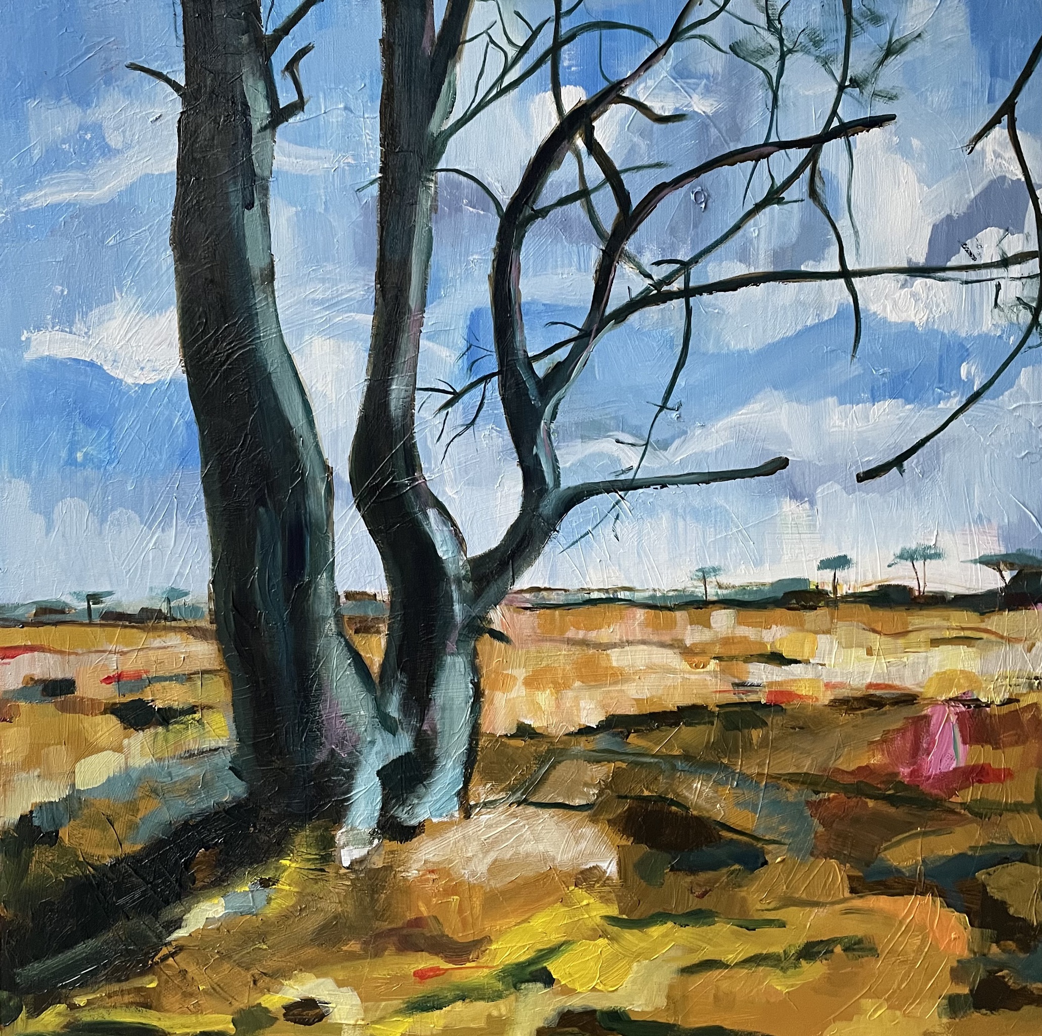 Een boom zo prominent op de verlaten heide vraagt erom geschilderd te worden.