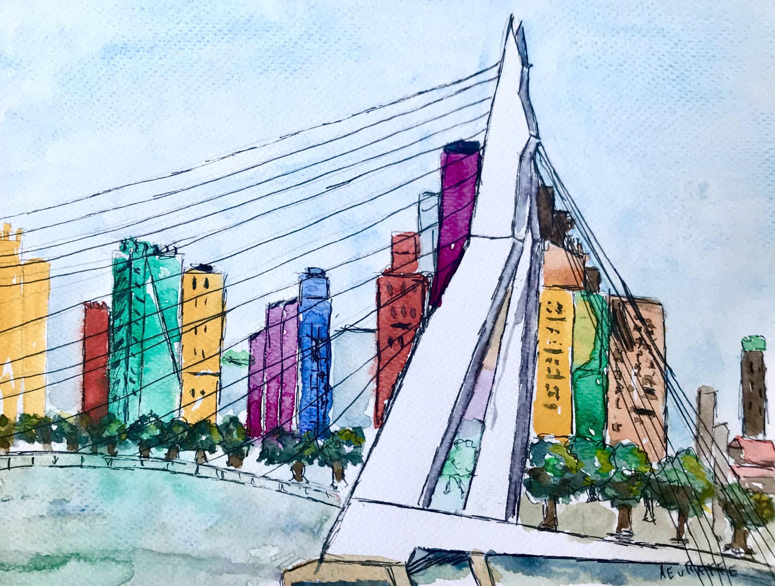 Aquarel Rotterdam Erasmusbrug