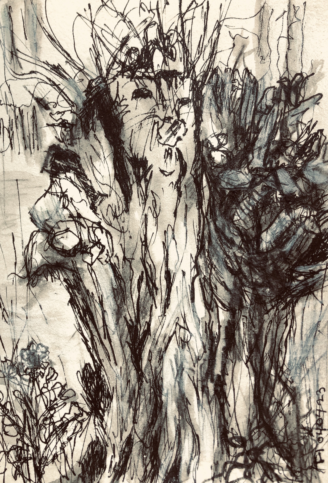 Drie Broek Knotwilg Gratiën Dommel Bossche # #de #het #lente #hertogenbosch #aquarelpotlood #april #wilg #inktpen #contépotlood