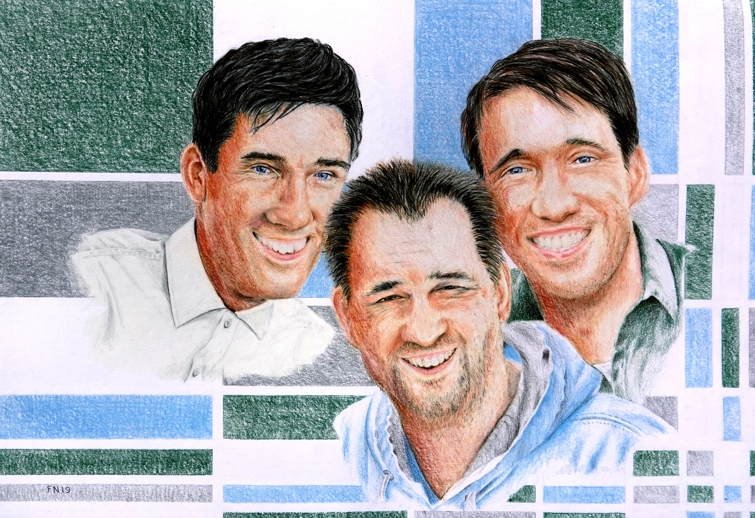 In 2019 heb ik na tien jaar opnieuw een portret van mijn drie zoons gemaakt. Dit keer gebruikte ik pastel. Ook experimenteerde ik wat met achtergronden.