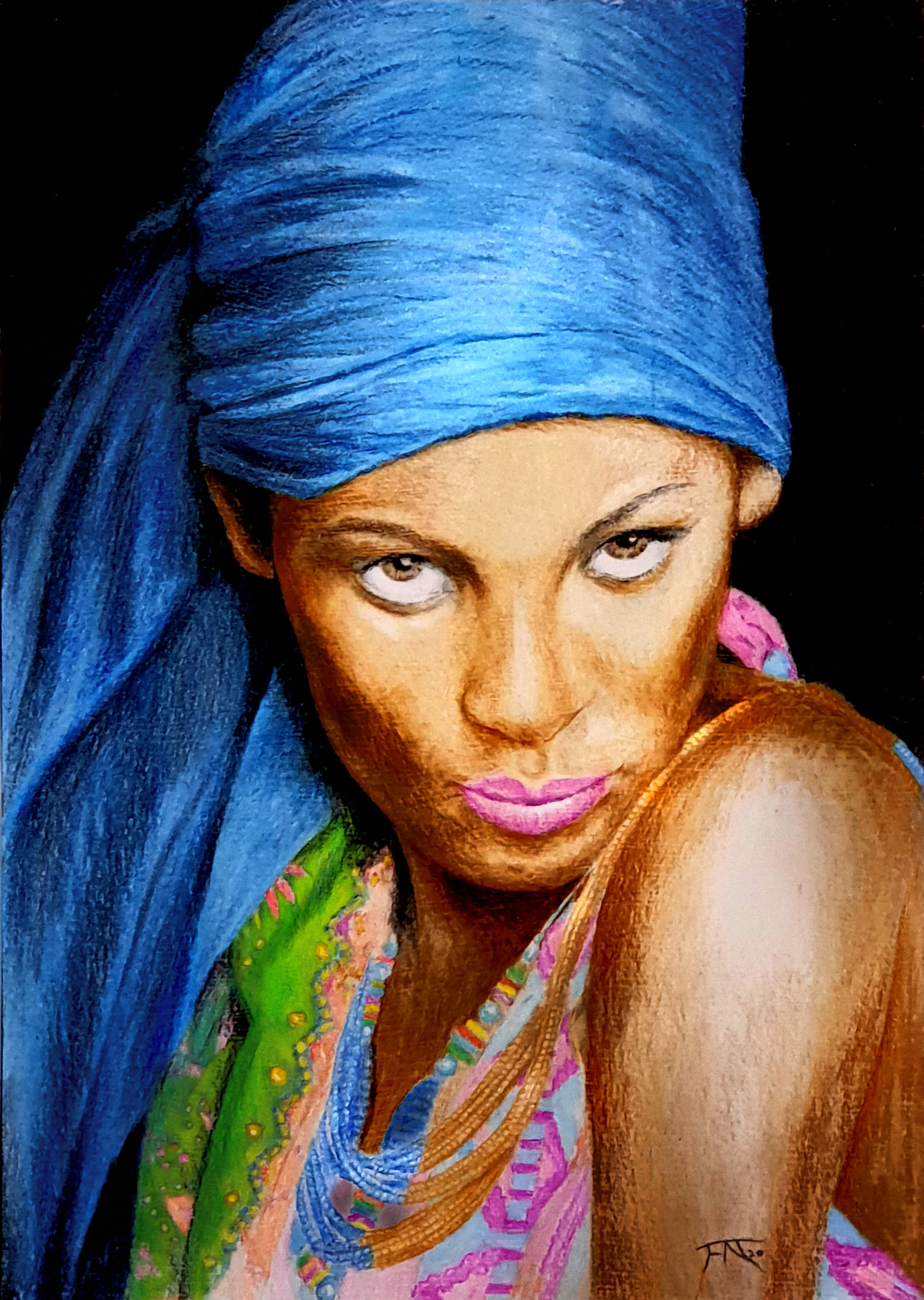 Vrouw Portret Kleuren Felle Pastel Hoofddoek Frans Nennie