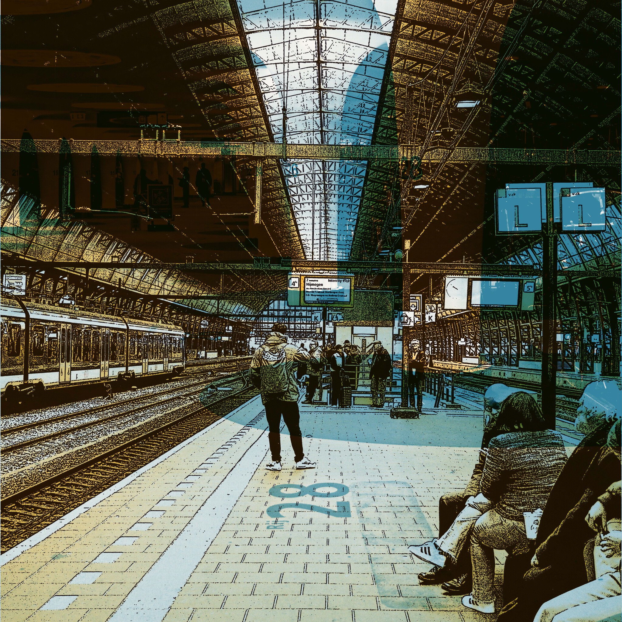 'Op het perron 2' * te koop digitale art-print, 50 x 50 cm, prijs: € 365 (inclusief lijst, of op dibond) (diverse formaten zijn mogelijk, naar uw wens - de prijs variëert dan mee)