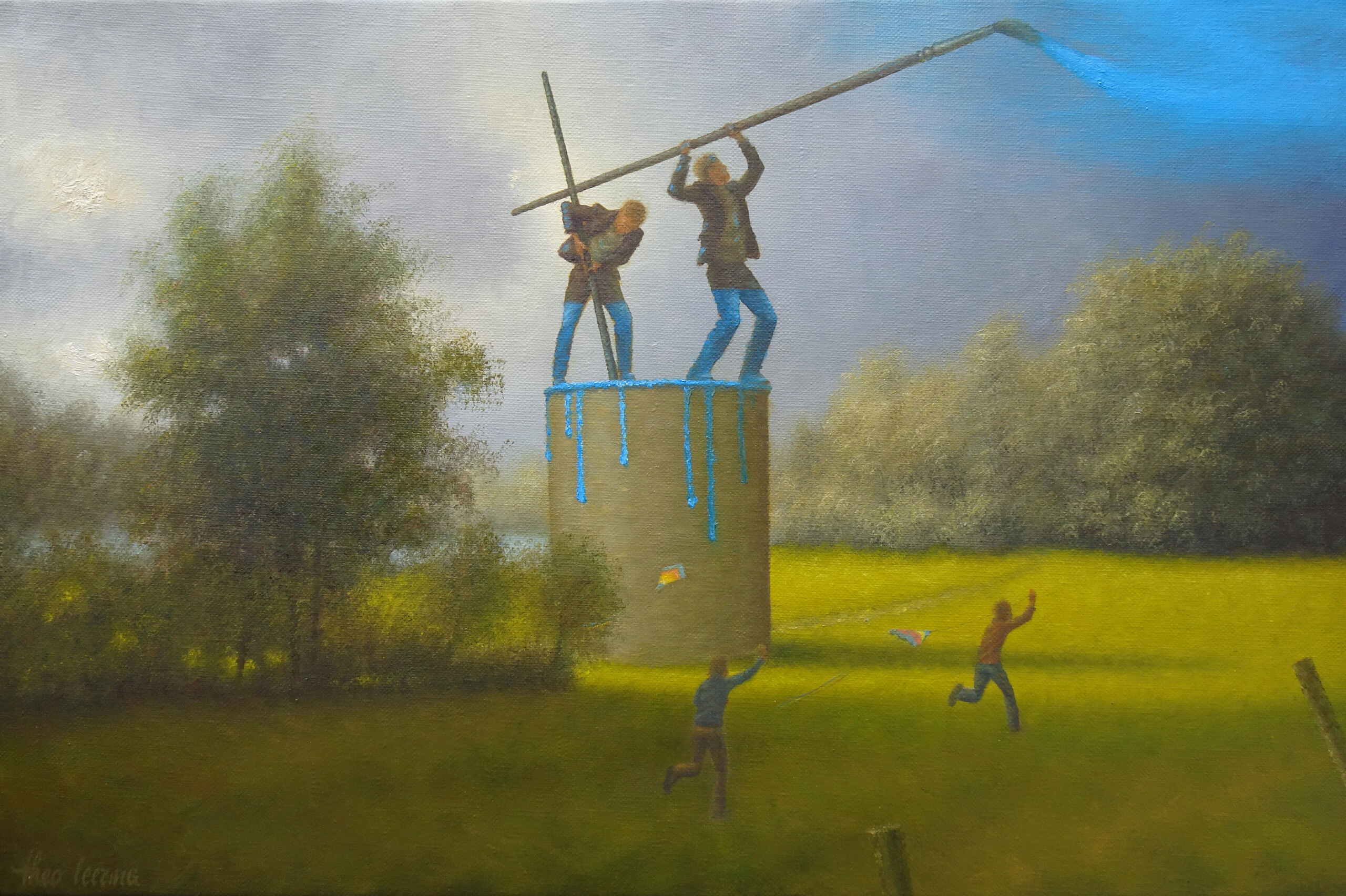Na het voltooien van een grafische opleiding en jarenlange zelfstudie is Theo Leering sinds enige tijd full time werkzaam als beeldend kunstenaar. Zijn stijl valt moeilijk in één hokje te plaatsen maar is altijd figuratief. Het beweegt tussen realistisch en absurdistisch en is vaak melancholisch van toon. Achter deze melancholie schuilt te allen tijde een sprankje hoop. De thema’s lopen sterk uiteen al speelt muziek in veel van zijn werk een belangrijke rol. In principe kan alles wat op zijn netvlies verschijnt, hoe klein of ogenschijnlijk nutteloos ook, dienen als idee voor een schilderij. In opdracht maakt Theo portretten en muurschilderingen. Daarnaast geeft hij een aantal dagdelen per week les in tekenen en schilderen.