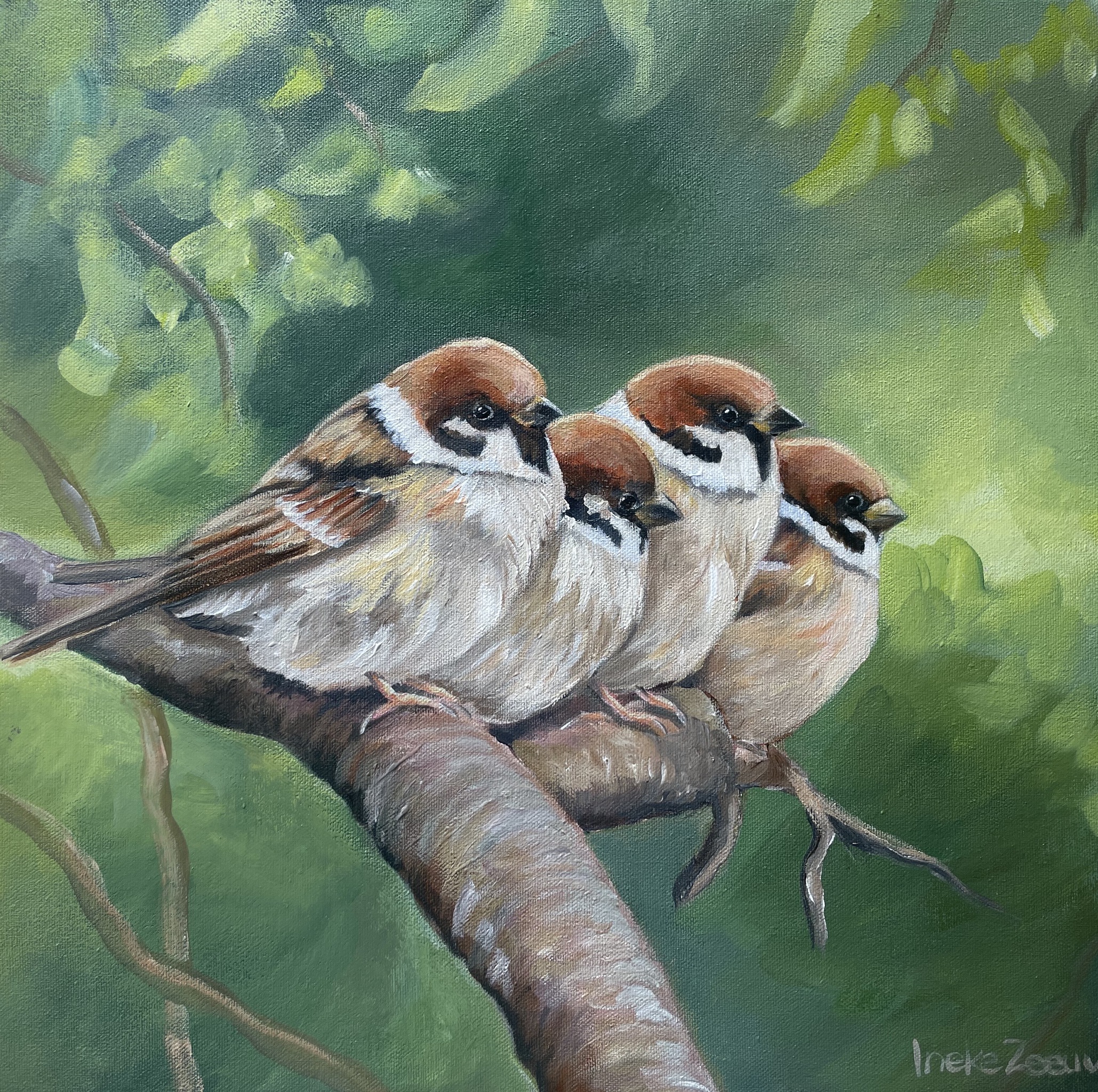 Mus Mussen Musje Musjes Sparrow Painting Schilderij