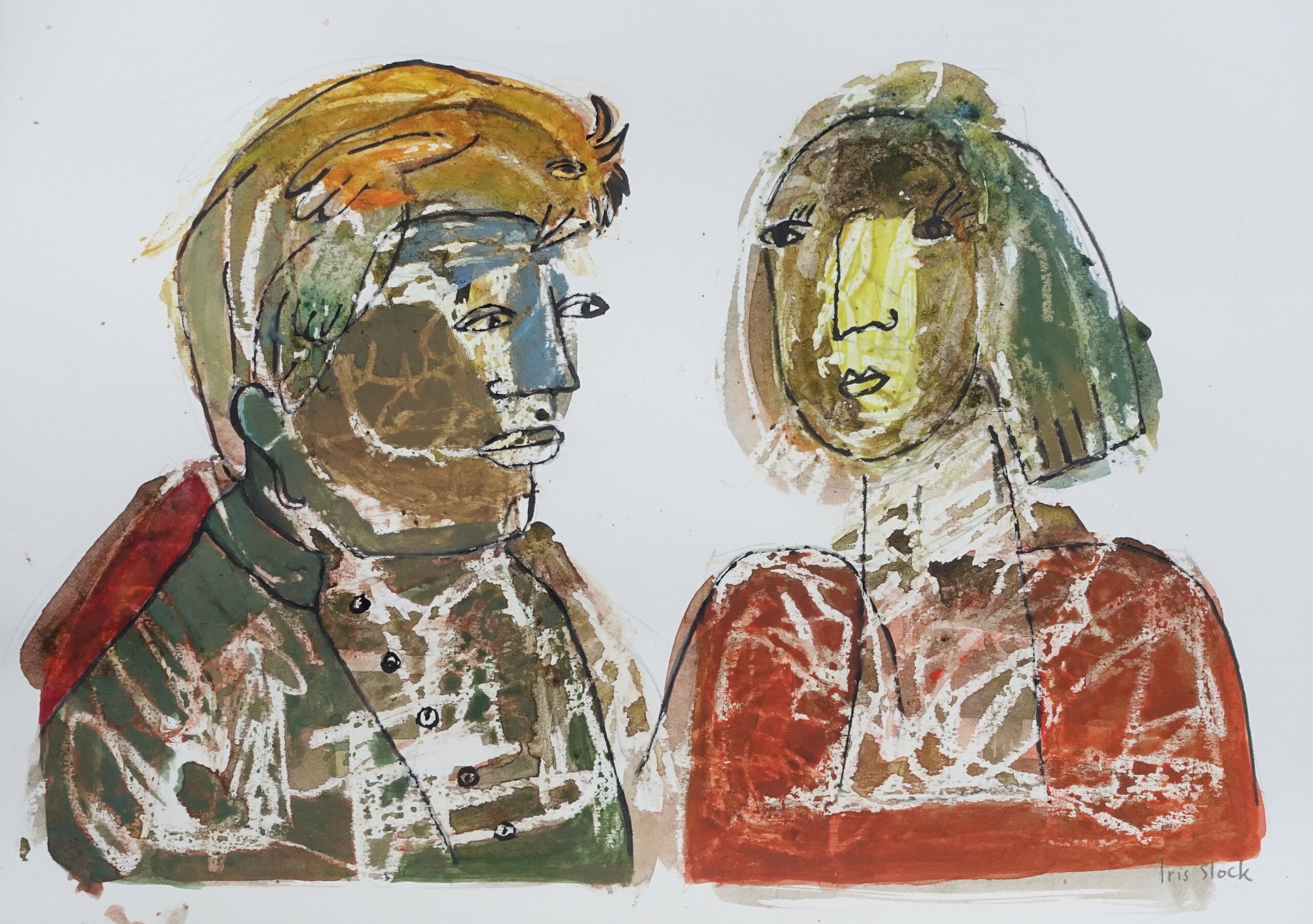 Man met een hanenkapsel met vrouw ernaast. Is ingelijst 53 x 41 cm