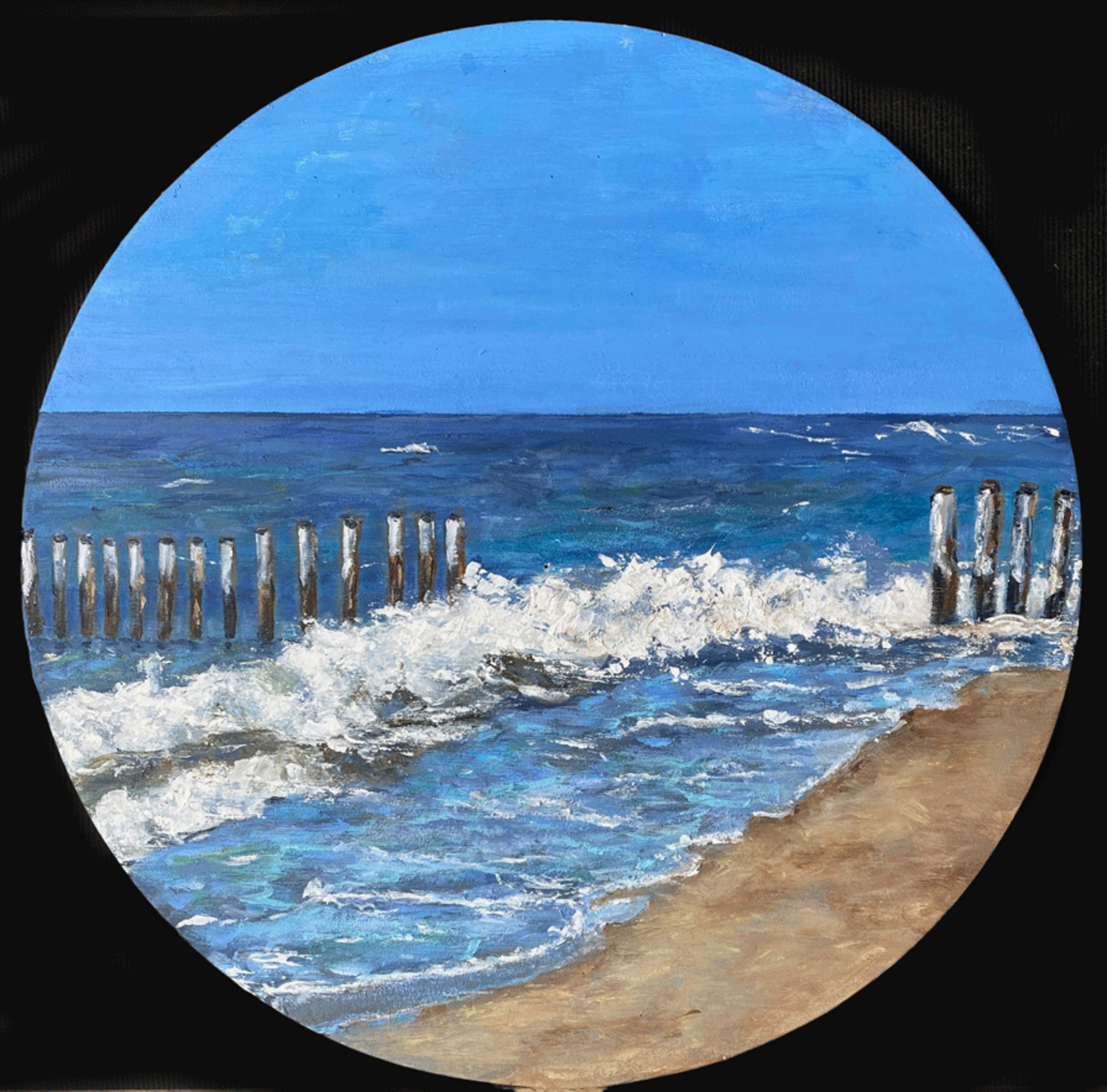 Schilderij Wit Zee Blauw Groen Water Rond Golven