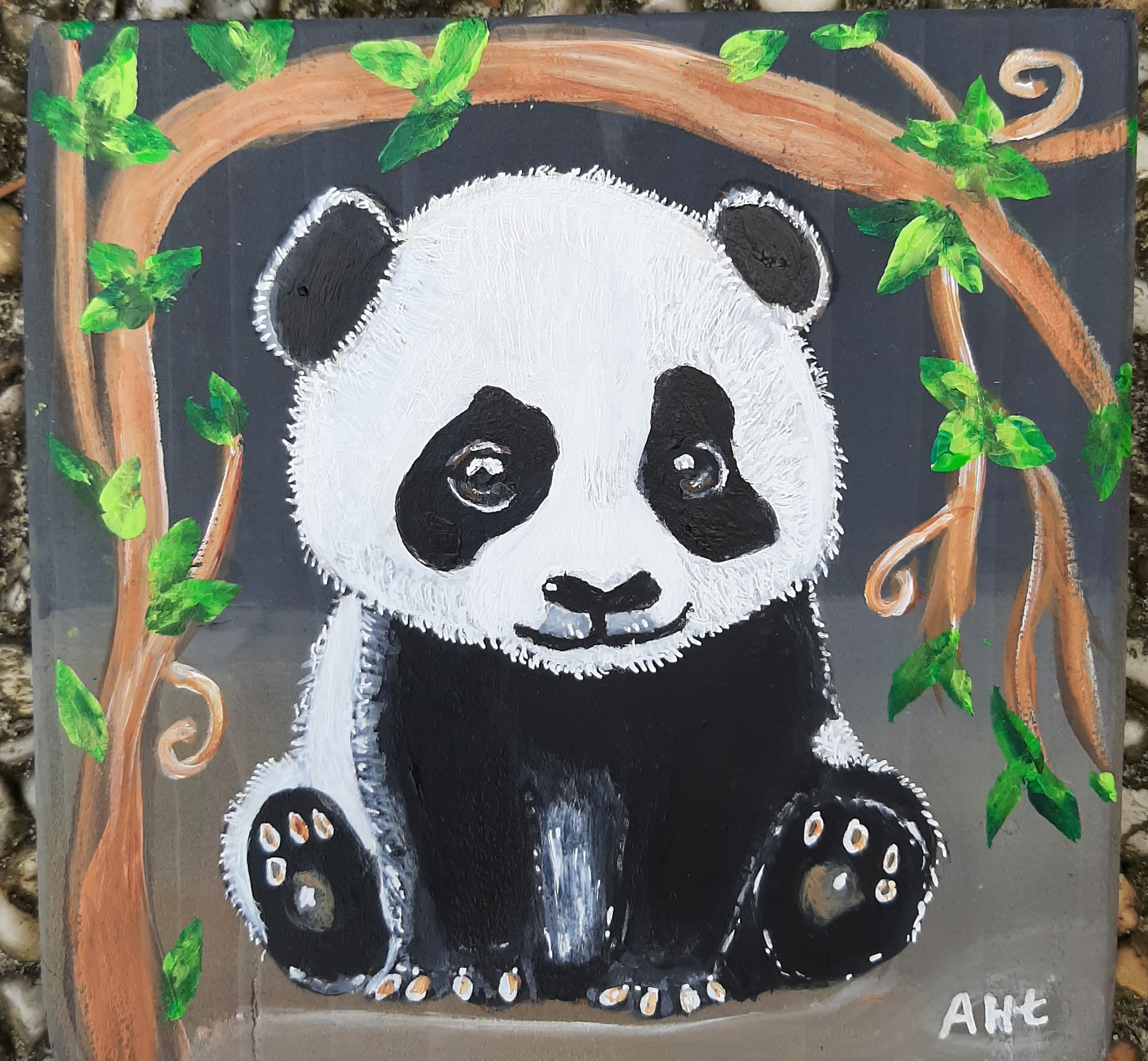Lief schilderijtje op hout Pandabeer baby in acryl
