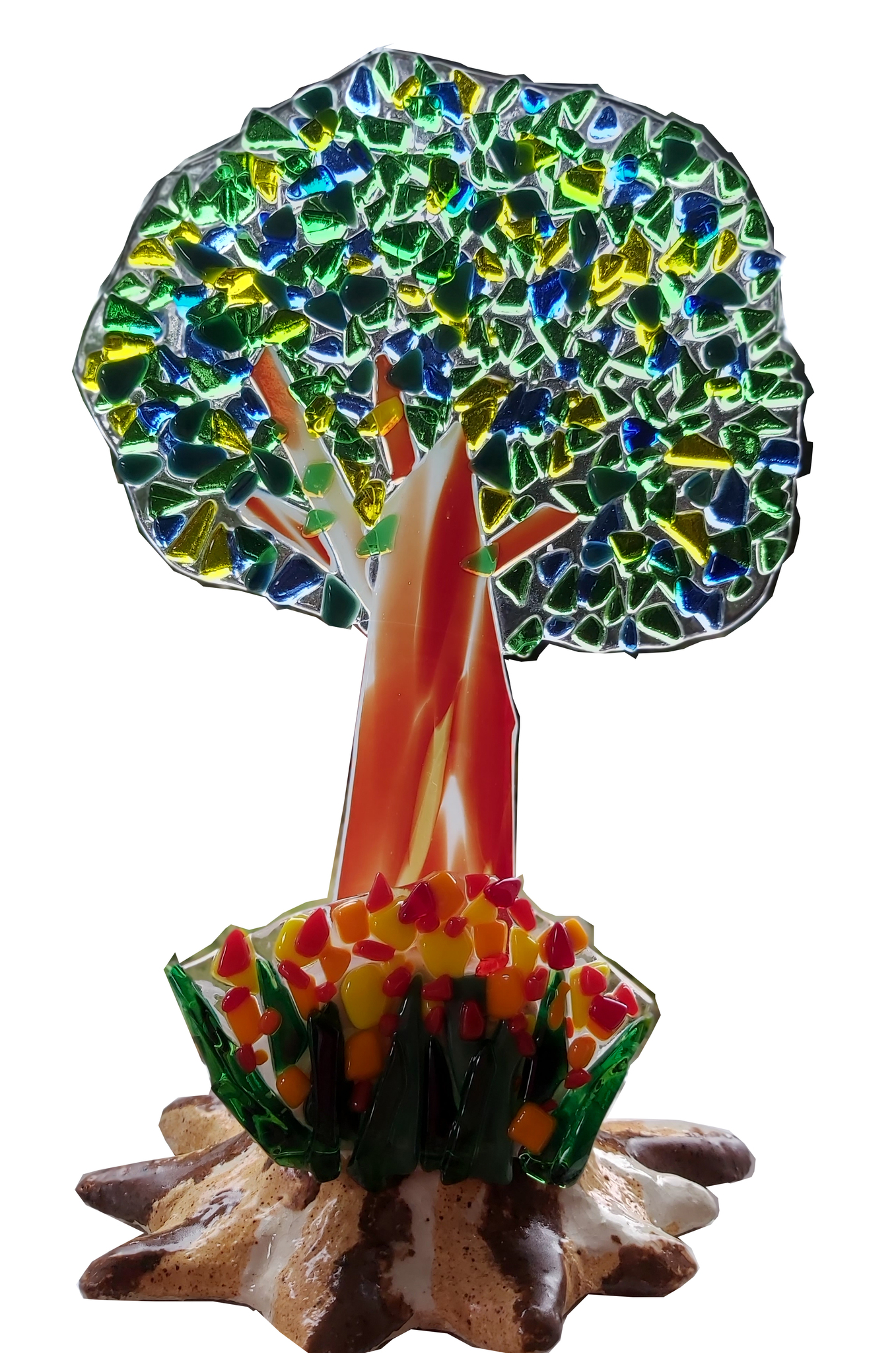 Boompje Glasfusingtechniek Voet Keramiek Groen Geel Blauw