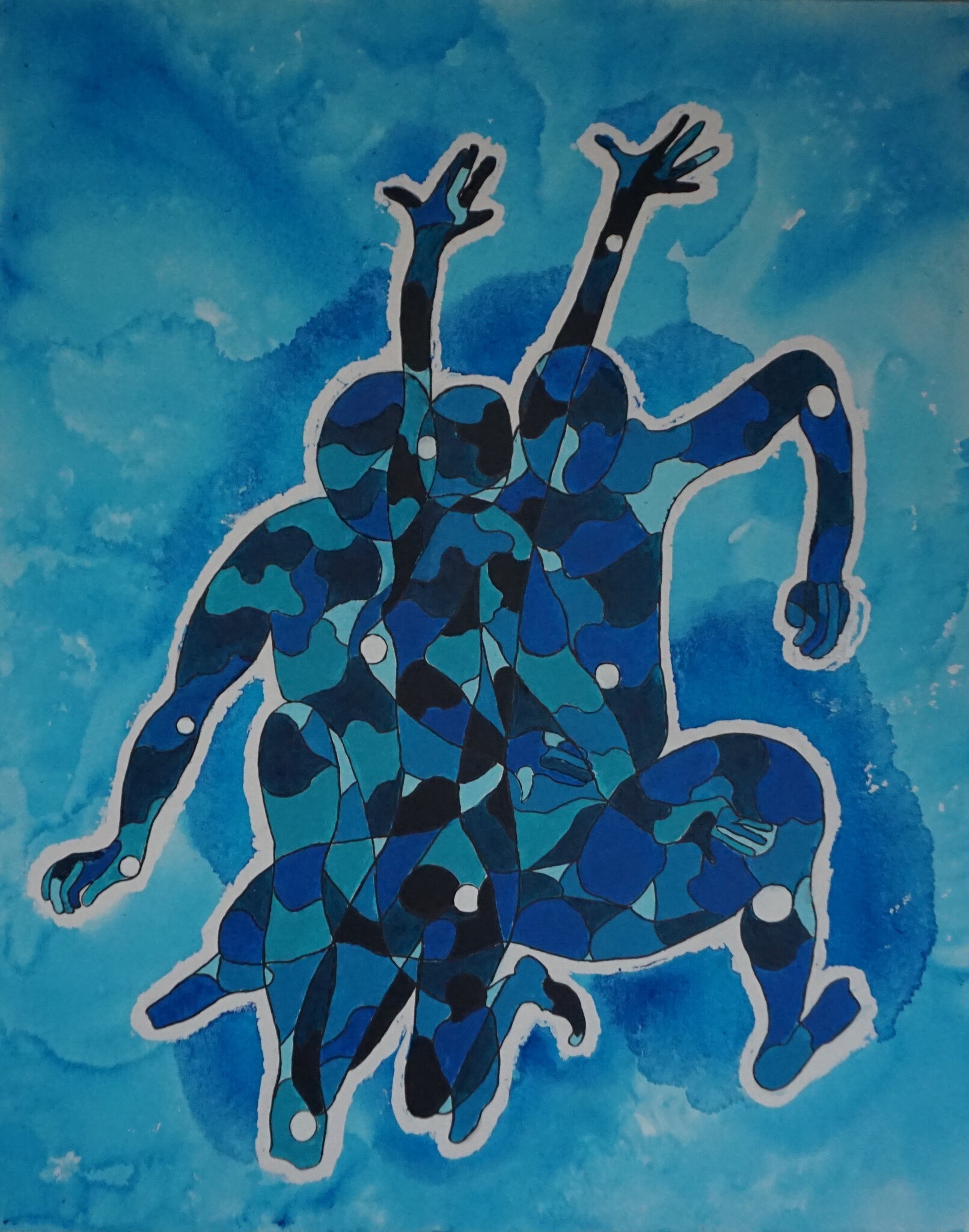 Drie met elkaar vervloeiende figuren.