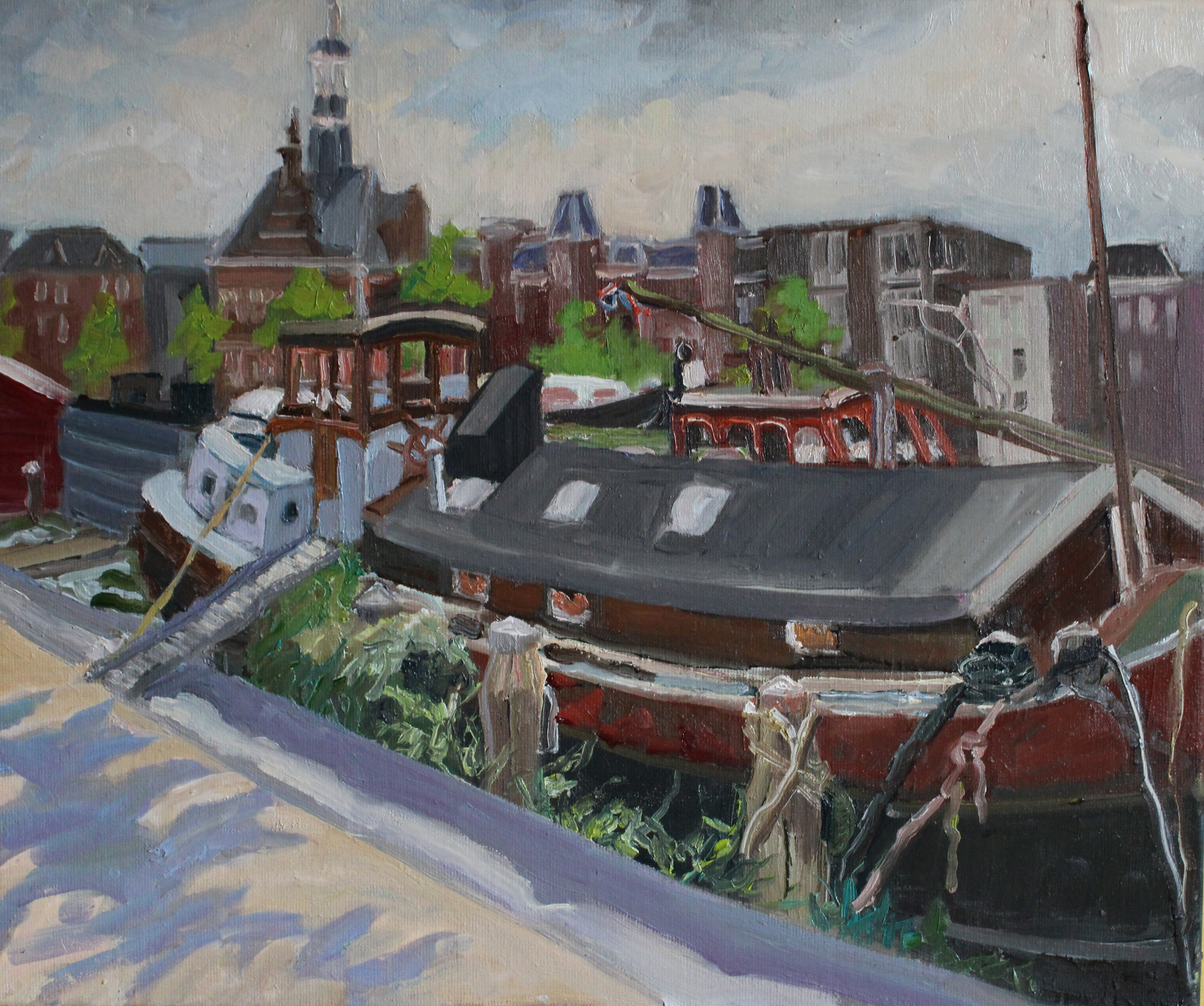 Water Kleurrijk Amsterdam Olieverfschilderij Stad Stadsgezicht Schip Impressionistisch Pleinair Cityscape Stadsschilderij Pleinairschilderij