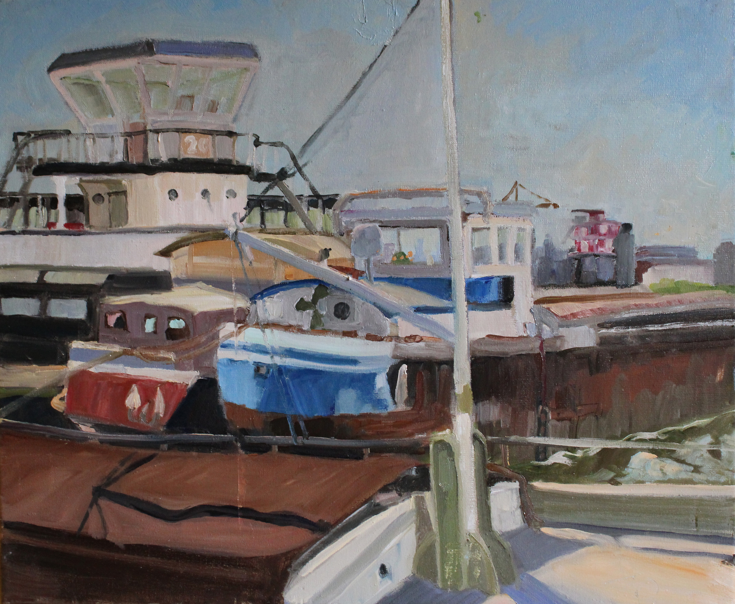 Amsterdam Olieverfschilderij Stad Stadsgezicht Boot Schip Boten Schepen Woonboten Pleinair Stadsschilderij Landschapsschilderij Pleinairpainting