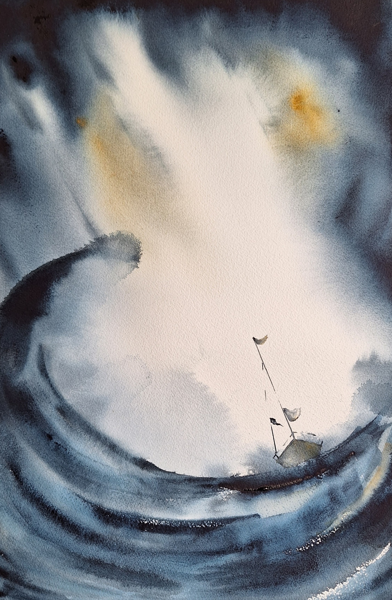 Zee Aquarel Boot Storm Landscap Waterverf Sea Boat Belgium Nancy Watercolorpainting Nancymichiels Belgianwatercolor