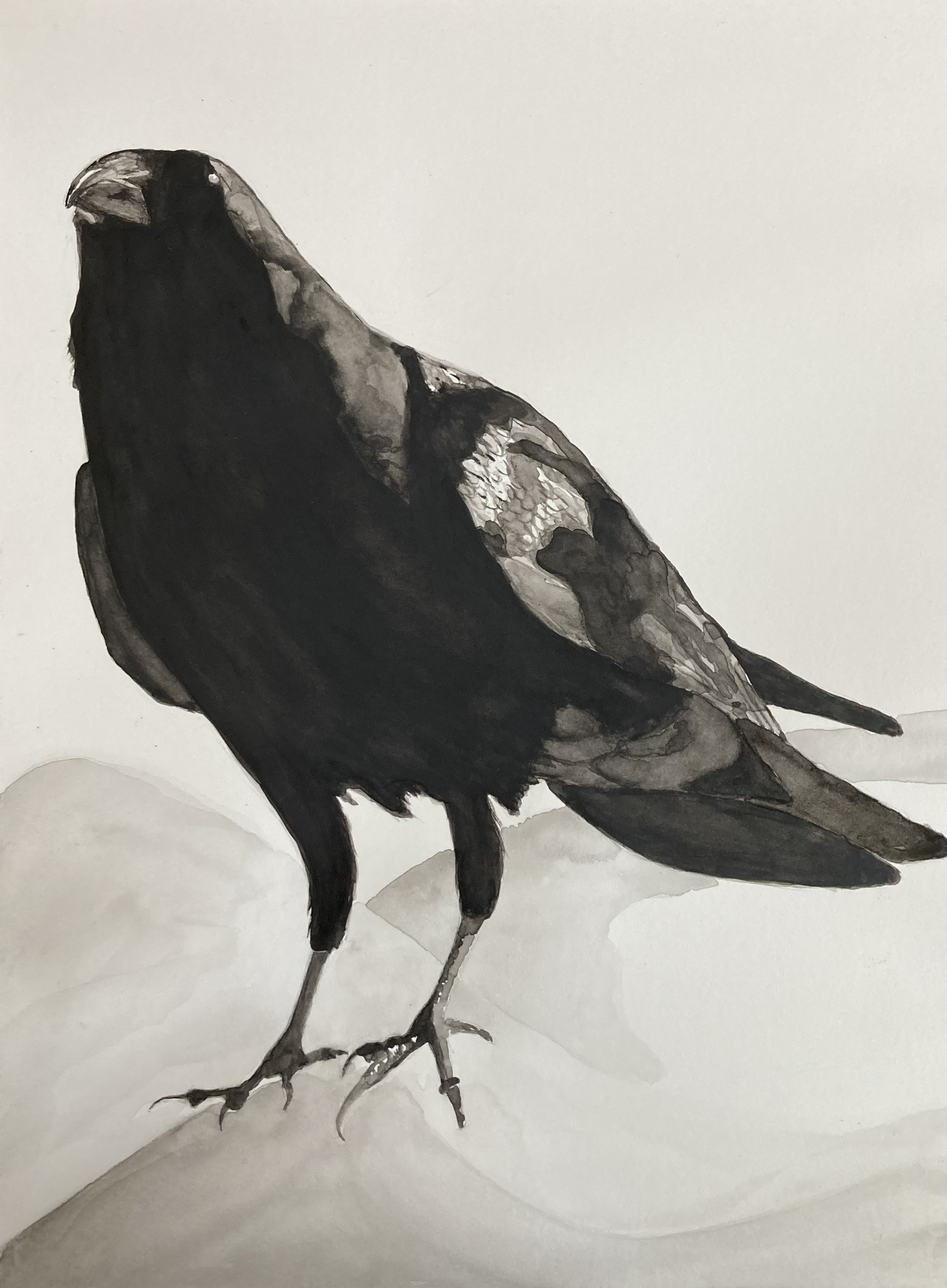 Kraai, aquarel, zwart-wit, 300 grams aquarelpapier, 40 x 30 cm