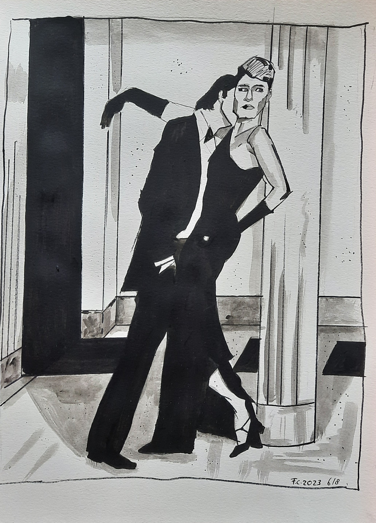 Verleiding. Vrij naar een foto van Helmut Newton