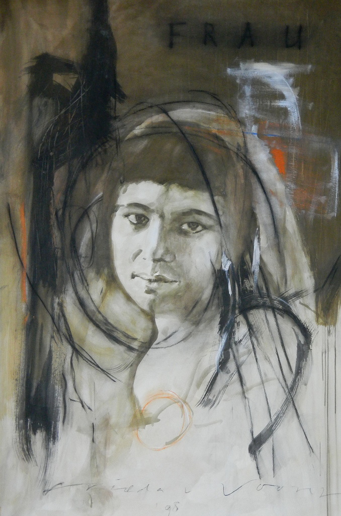 Ik woon en werk in Noord Italie,in het bergdorp Garzeno boven het Como-meer. Mijn schilderijen kenmerken zich door een combinatie van figuratie en abstractie. Grafische elementen, foto's, tekst,collages van stukken krant vormen een essentieel onderdeel van de totale compositie.