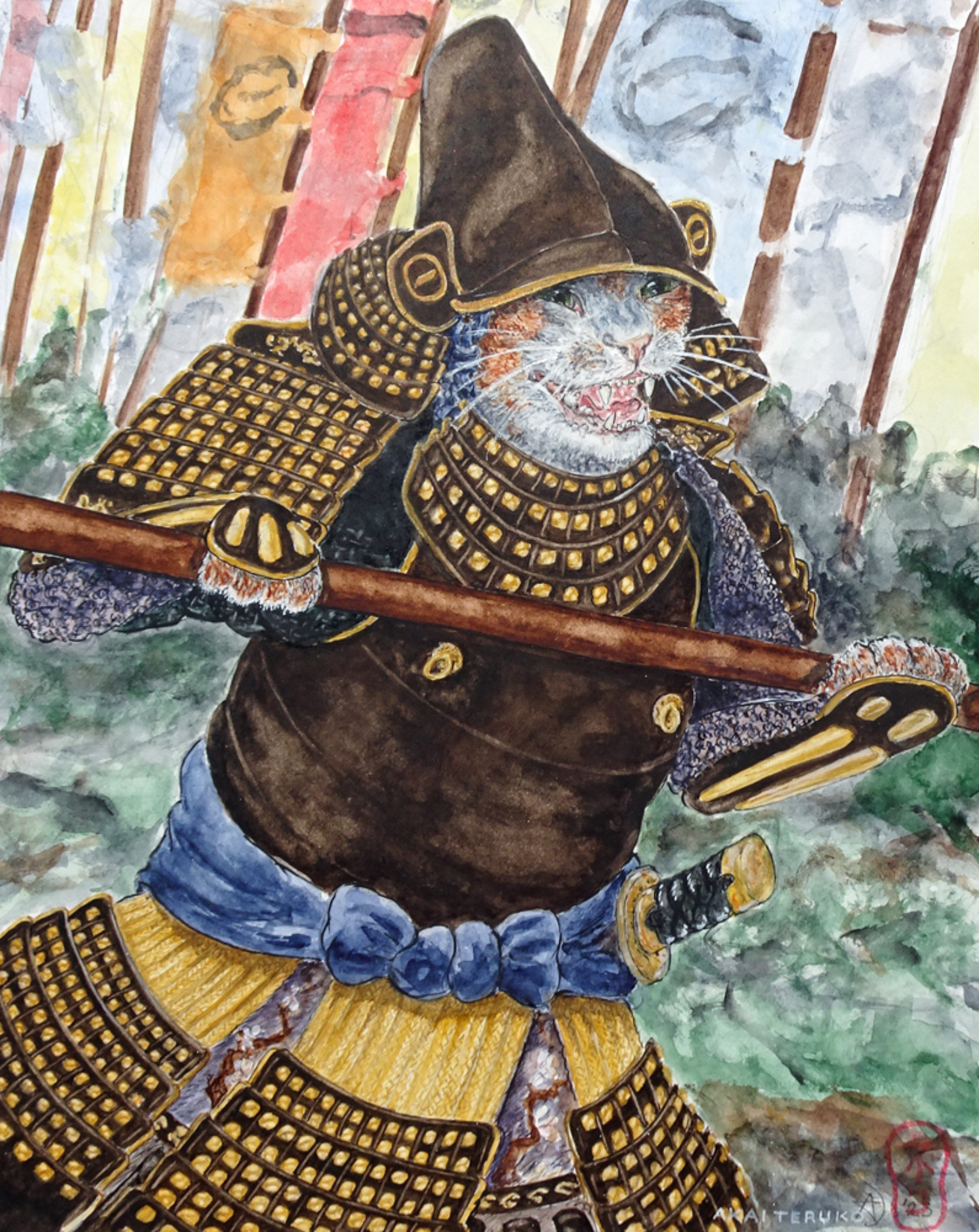 Arie de Jong (Alkmaar, 1961) verbindt in haar werk haar passie voor katten met haar interesse voor de Japanse cultuur en (krijgs)geschiedenis.