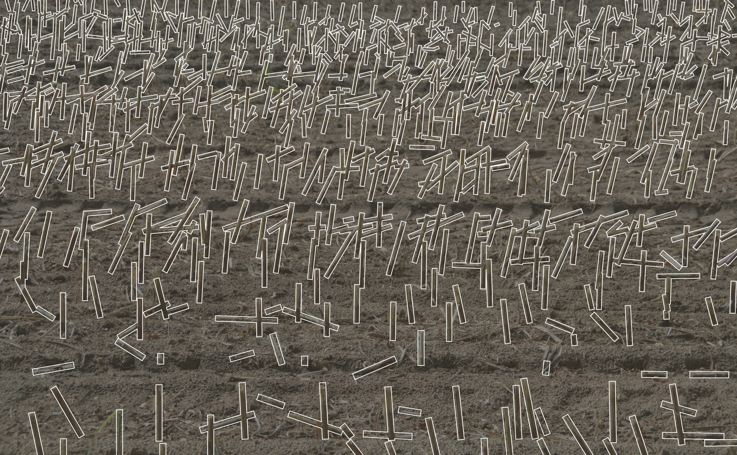 In mijn eerdere werk probeerde ik de grote lijnen in het landschap te pakken door middel van fotocollages. In deze digitale tekening zoom ik in. Ik pak een hoekje van het landschap en registreer. Dit is het vierde deel van het vierluik 'Alom Mais', getiteld 'Boven het maaiveld'.