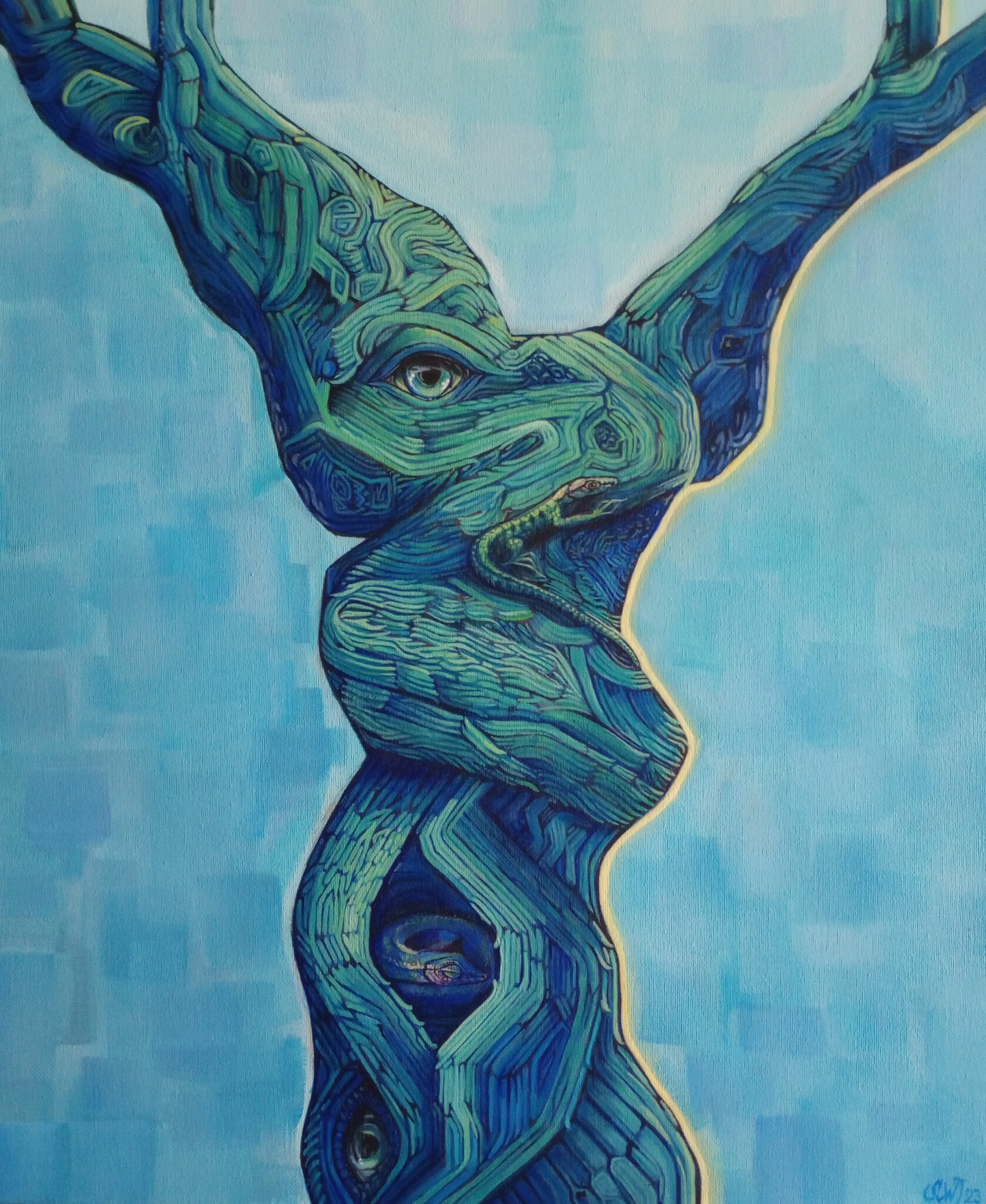 Blauw Mysterieus Groen Realistisch Surrealistisch Fantasie Hagedissen Druivenstok