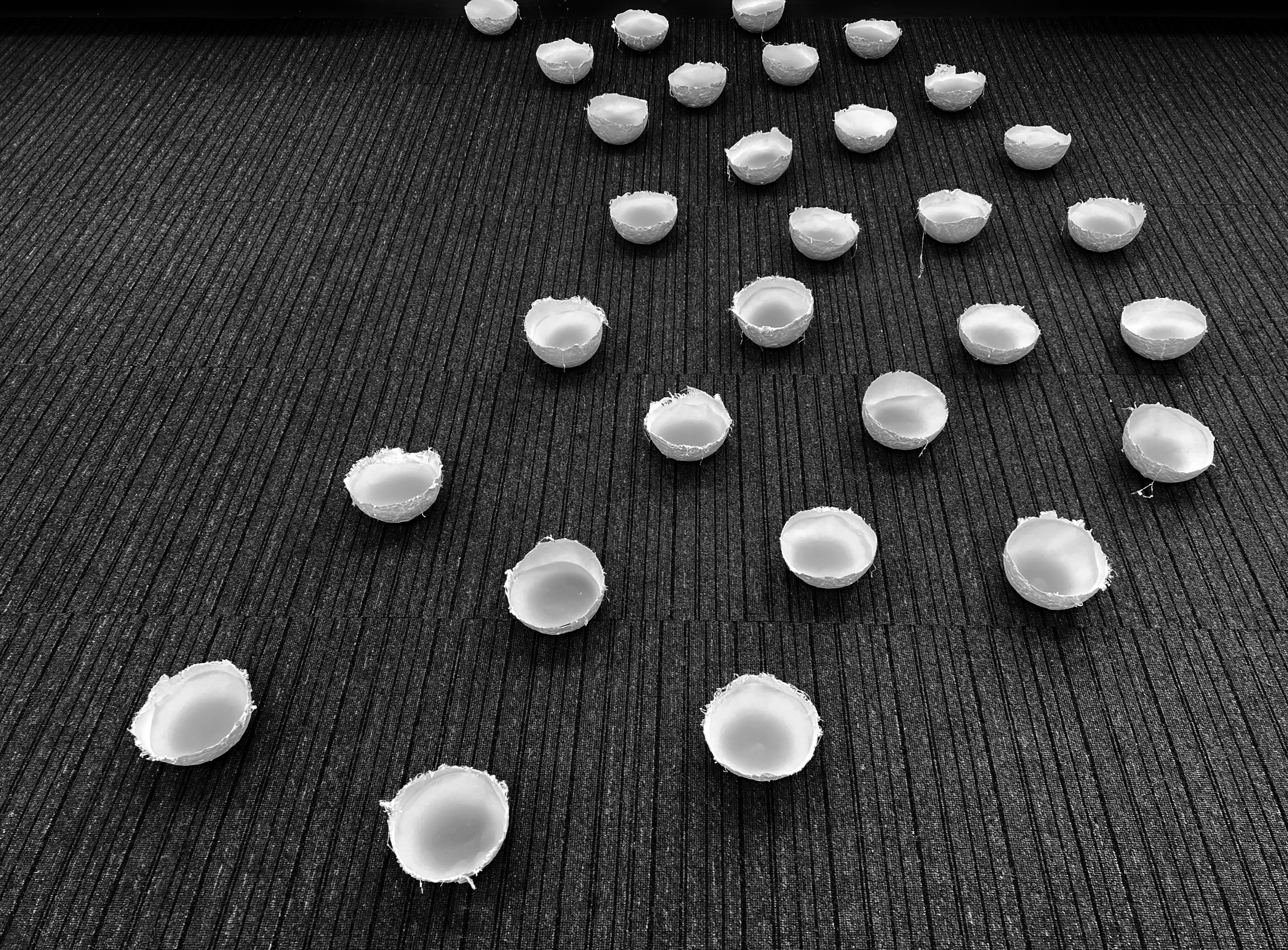 Installatie van kommetjes die de reis naar binnen symboliseren