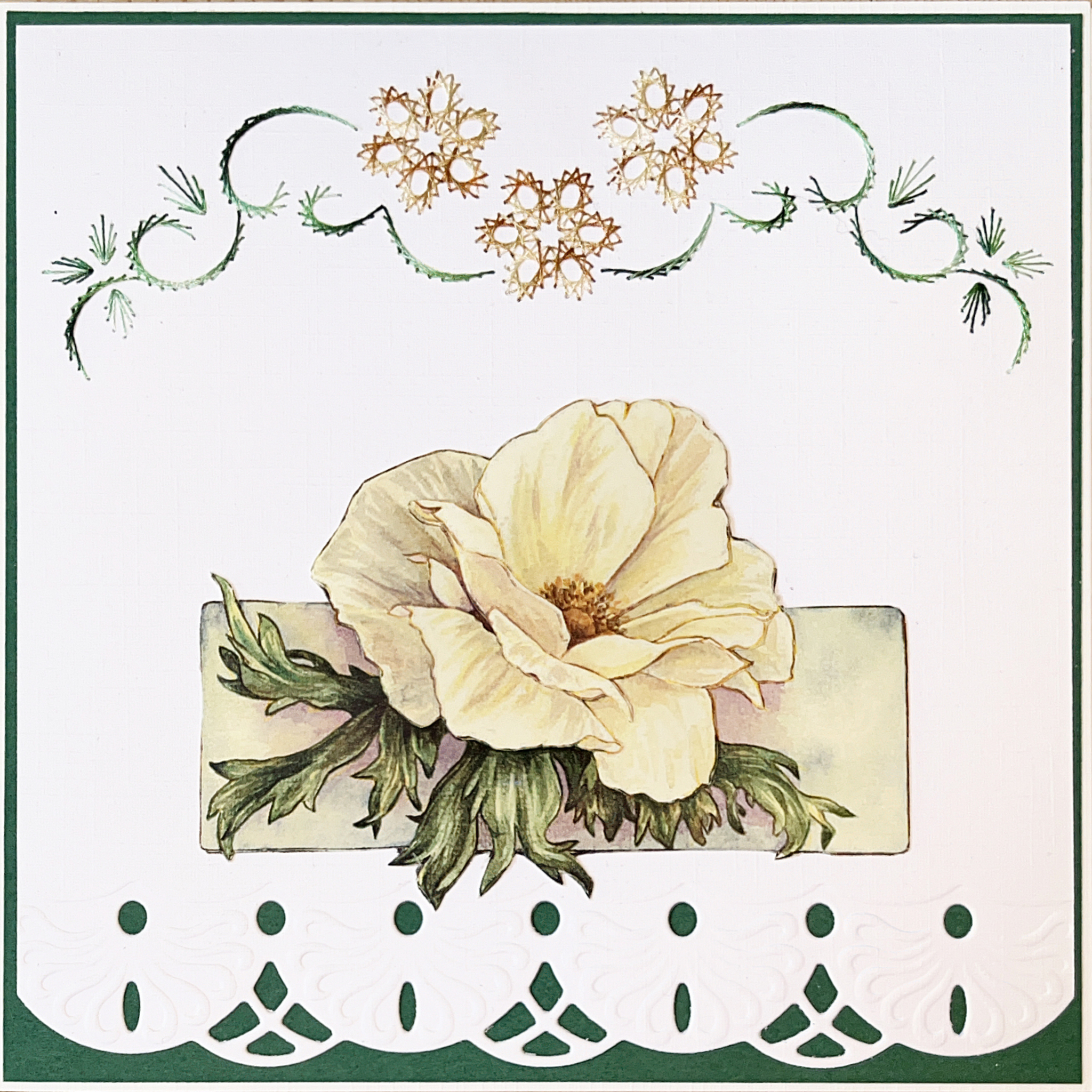 Groen Bloem Kaart Borduren Snijwerk Embossing