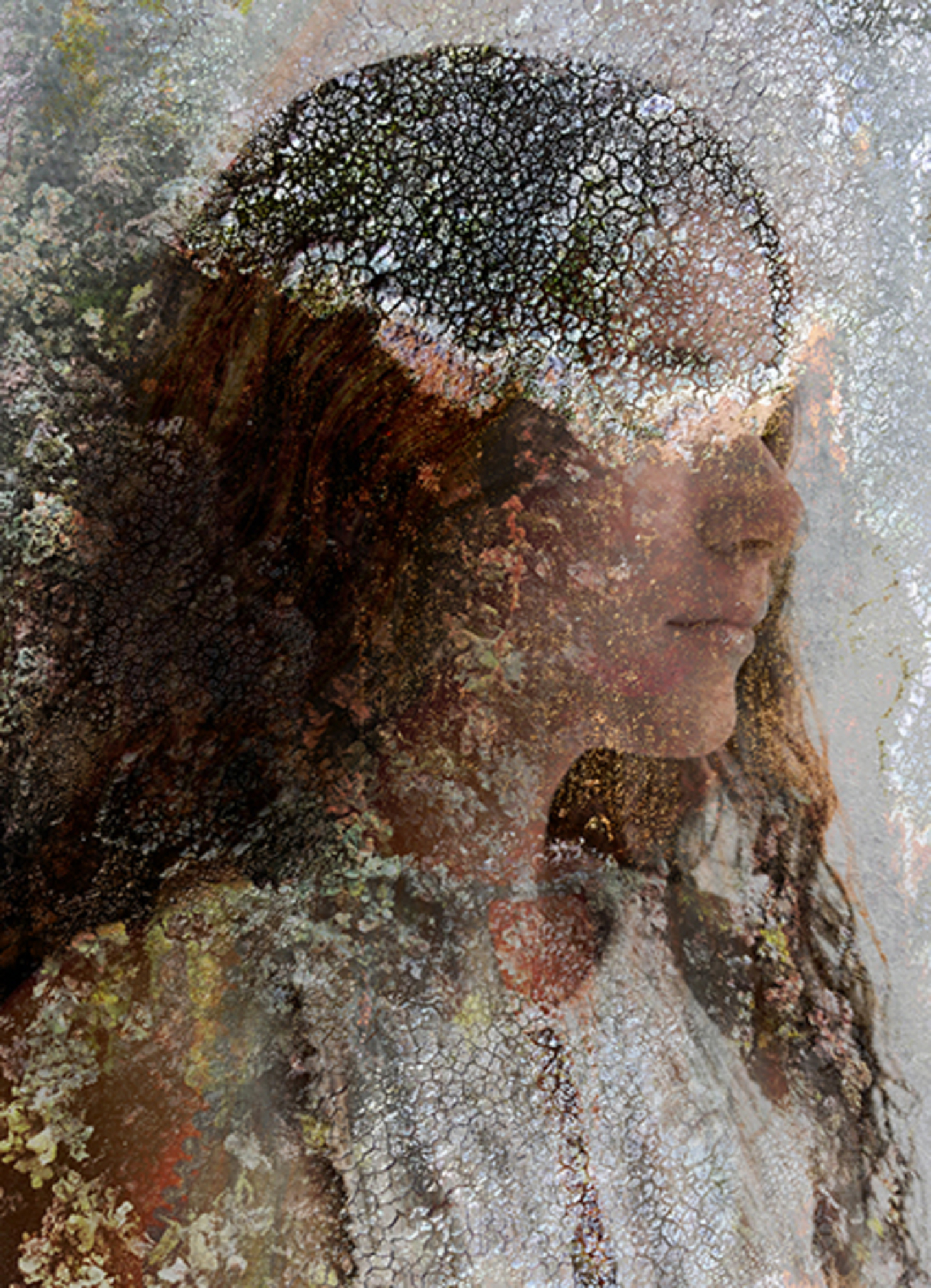 Foto Emotie Vrouw Portret Gezicht Kunst Lijst Kleur Gevoel Print Fotografisch Etching Kleurenfoto German Hahnemuhle Artglas Droomsluier