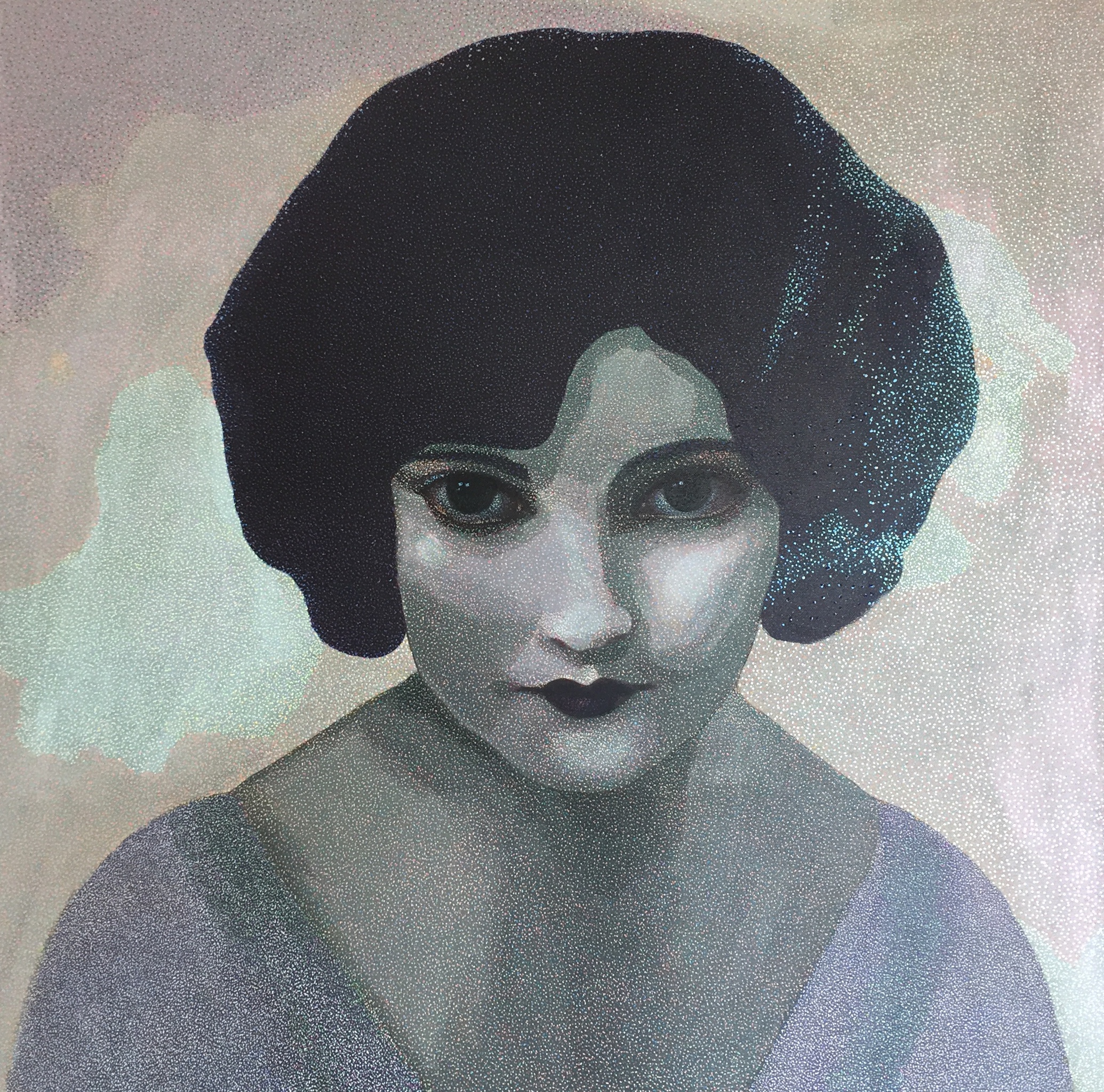 Acryl Vrouw Portret Ogen Blik Pointillisme Vintage Bohemian Poscastift Silentmovie