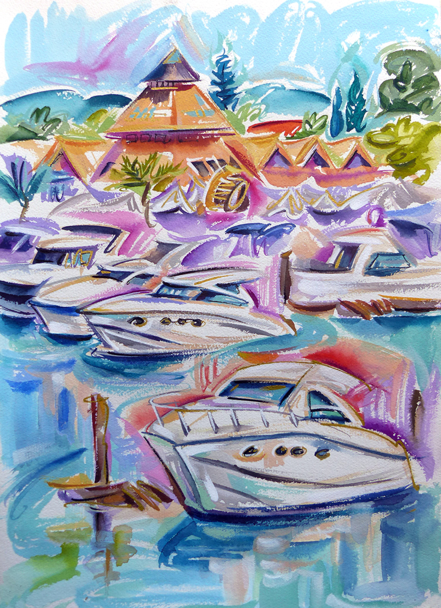 Harbour Beach Watercolor Ocean Portugal Sea Colorful Boats Happy Algarve Brewery Marina Yachts Vilamoura