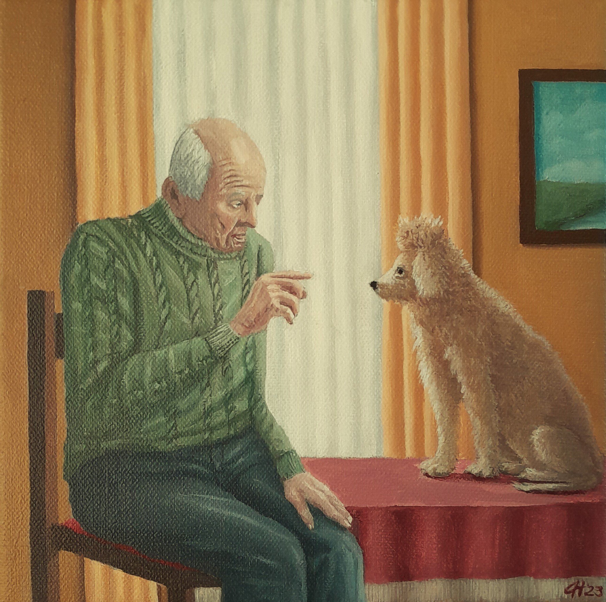 Kunst, en voor mij is dat vooral schilderen, omdat het moet. Het is als ademen. Op adem komen, een verhaal vertellen over die gekke wereld.