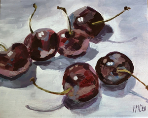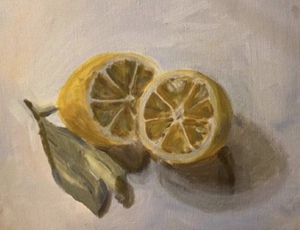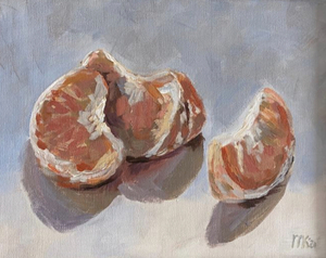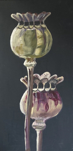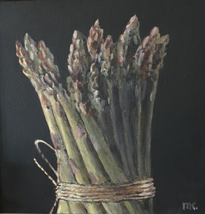 Marjolein zet haar voorwerpen met frisse kleuren en een grove toets op het doek, daarmee weet ze eenvoudige onderwerpen een ereplaats te geven
