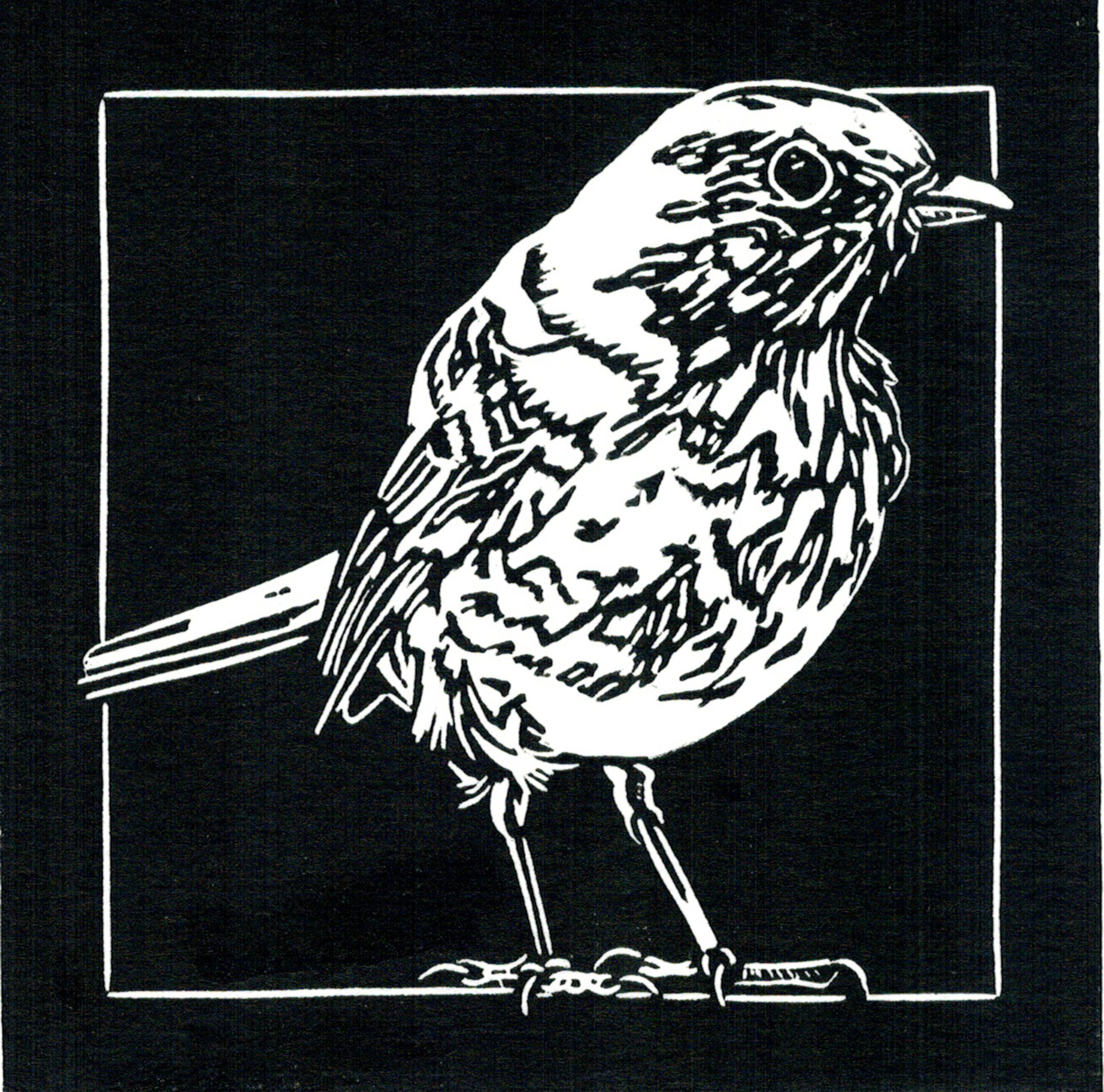 Wit Zwart Vogel Realistisch Linosnede