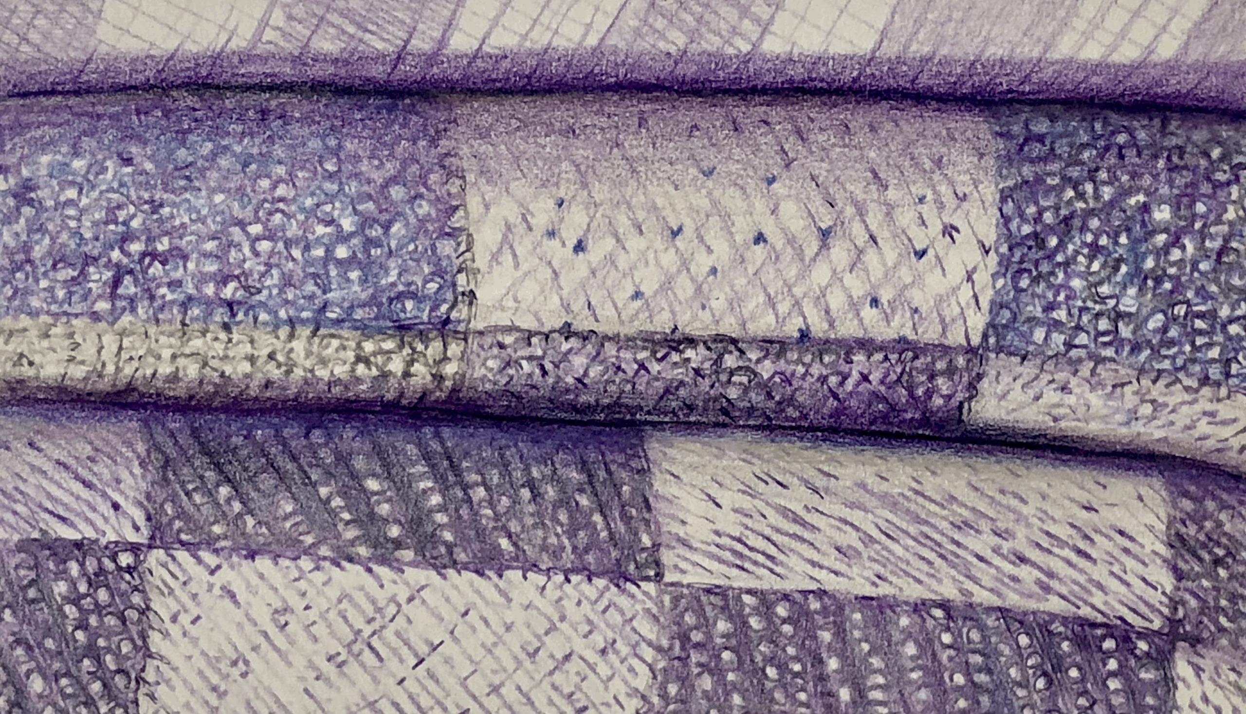 In deze stapeling was de uitdaging ook 'stofuitdrukking' van 'doekjes' en het patroon wat aanwezig was, Har Sanders als meesterlijk kunstenaar in dit genre was zeker in mijn gedachten, bij het verbeelden en de kleurpotloden techniek die ik hanteerde.