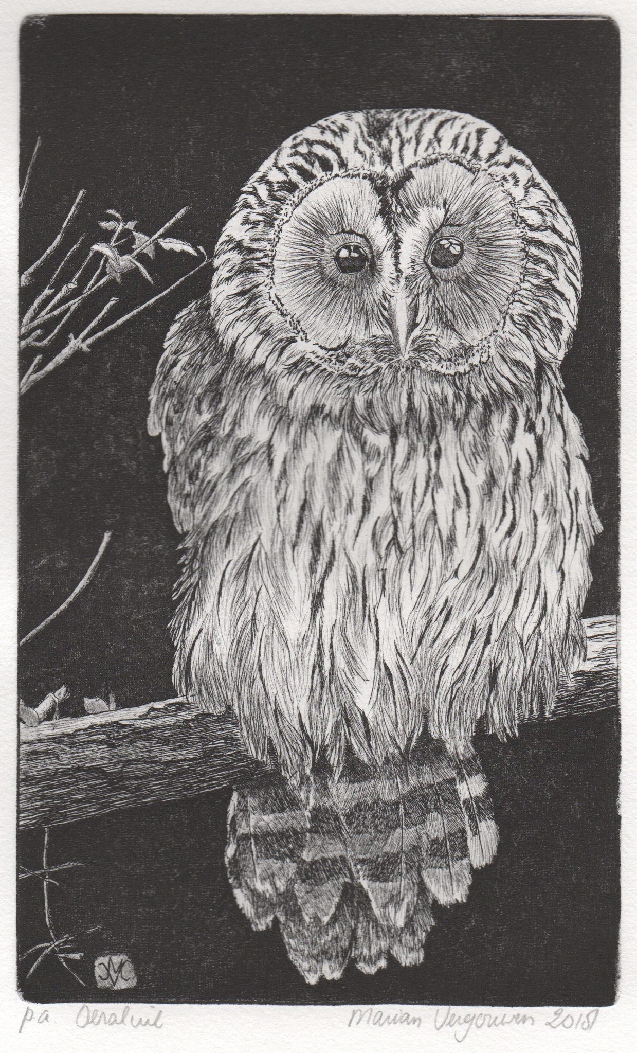 Deze uil was een geduldig model voor mij - oplage 25 exclusief lijst