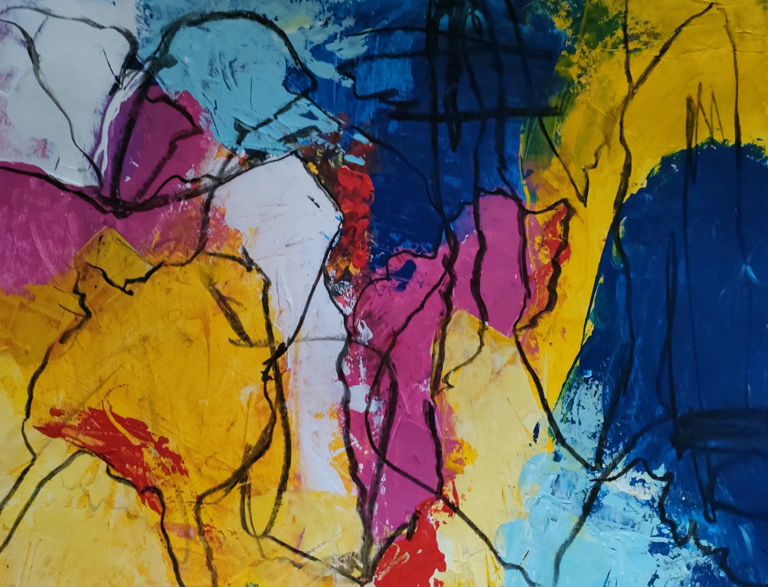 Dit werk hoort bij een serie. Een serie van 6 abstracte werken. Lijkend op elkaar maar toch weer anders .Acrylverf met posca stift..