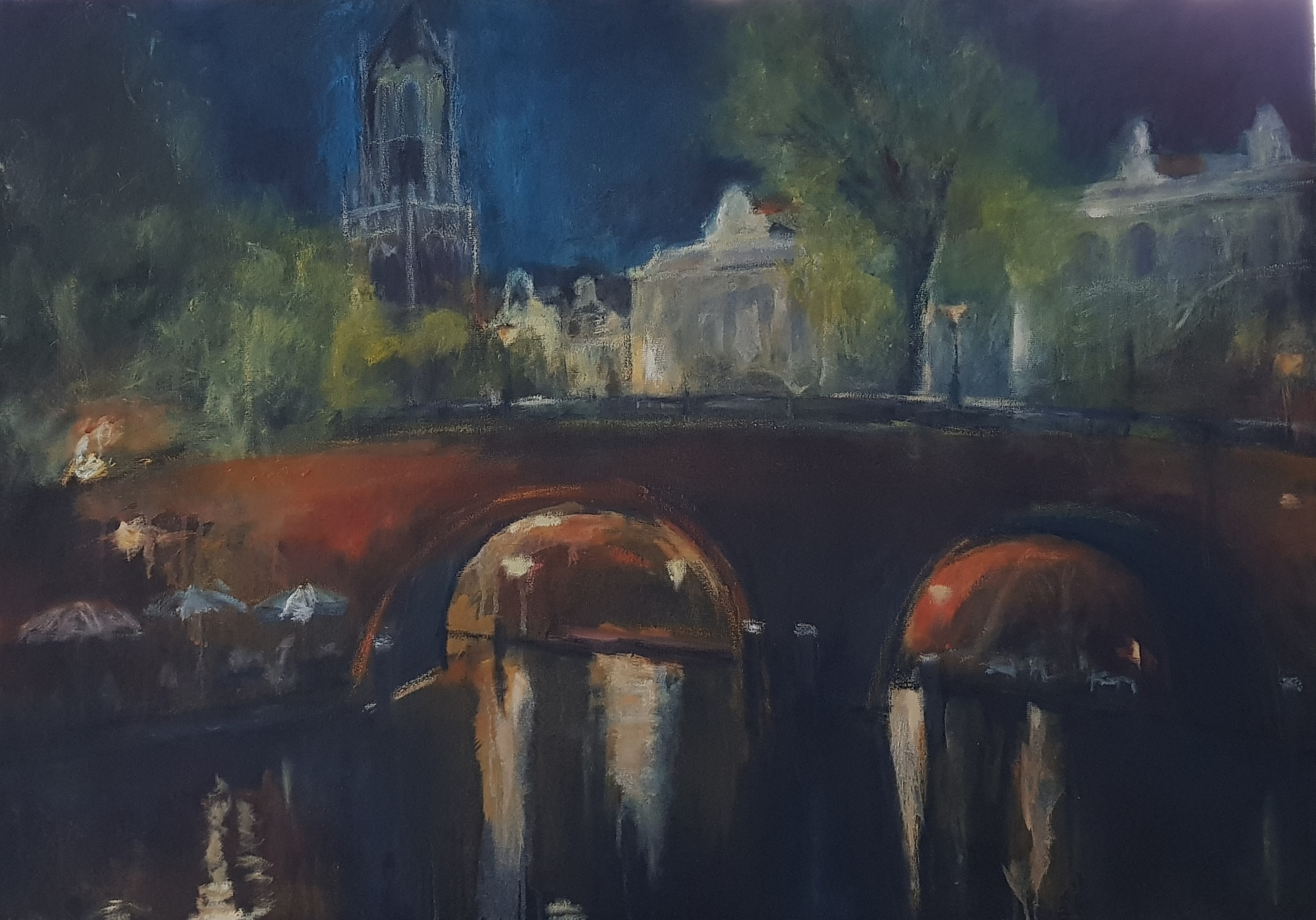 Olieverf Sfeer Stad Avond Utrecht