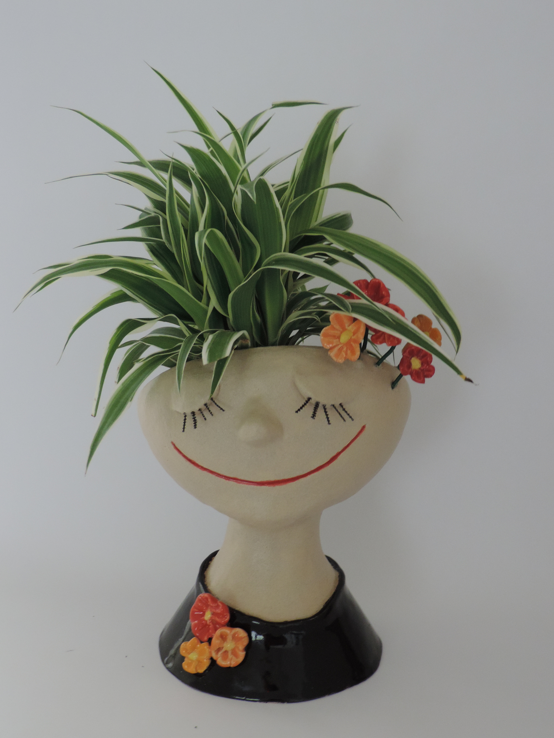 Het Bloemenmeisje is het gezicht met sinterengbe geglazuurd de details met glansglazuur De bloemetjes zijn er in gelijmd en de wimpers zijn uit schuurgaas geknipt en er in gelijmd gestookt op 1140