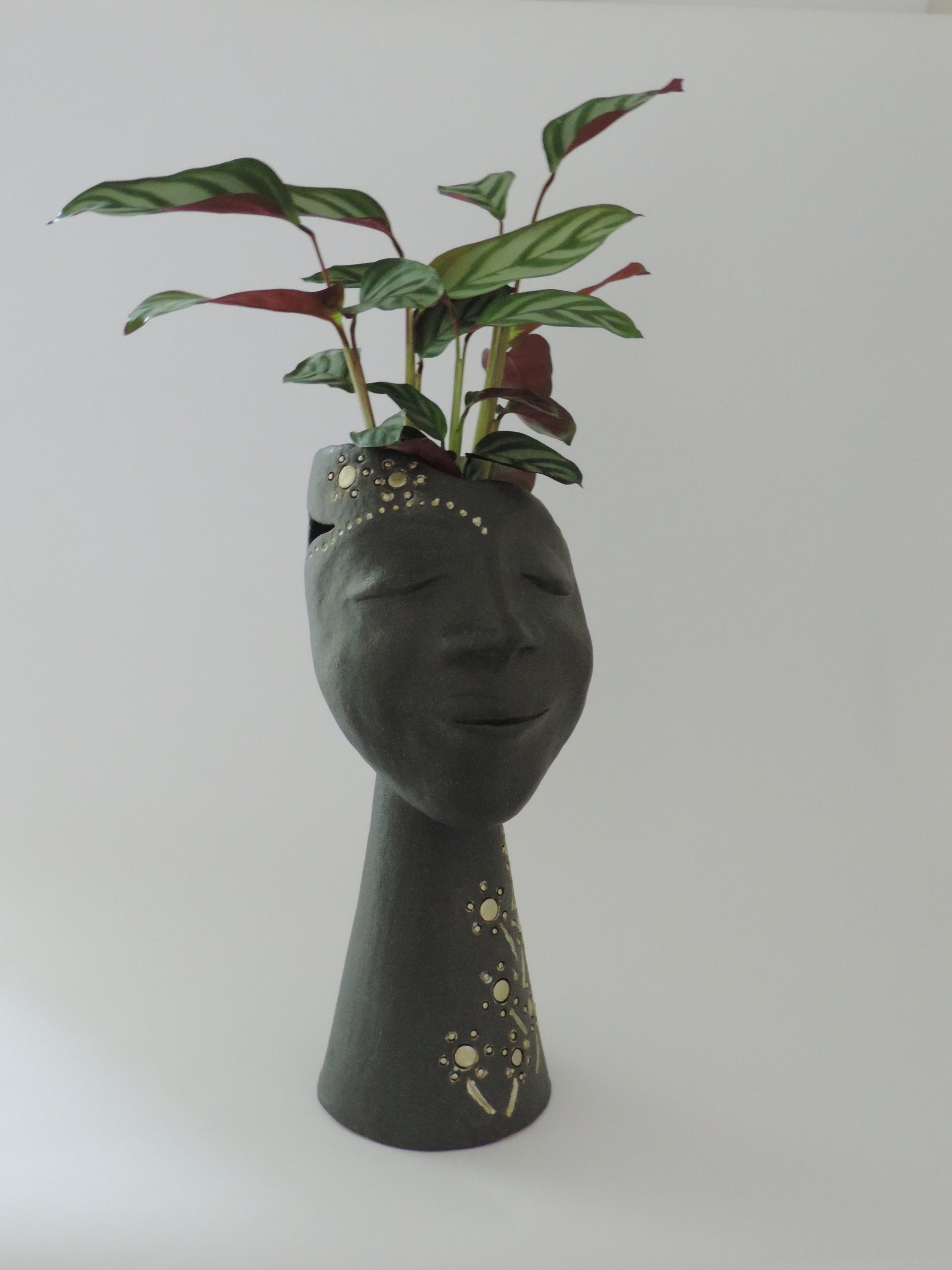 De statige dame zwart sinterengbe geglazuurd de details en gestookt op 1140 later heb ik met goudverf de accents aangebracht