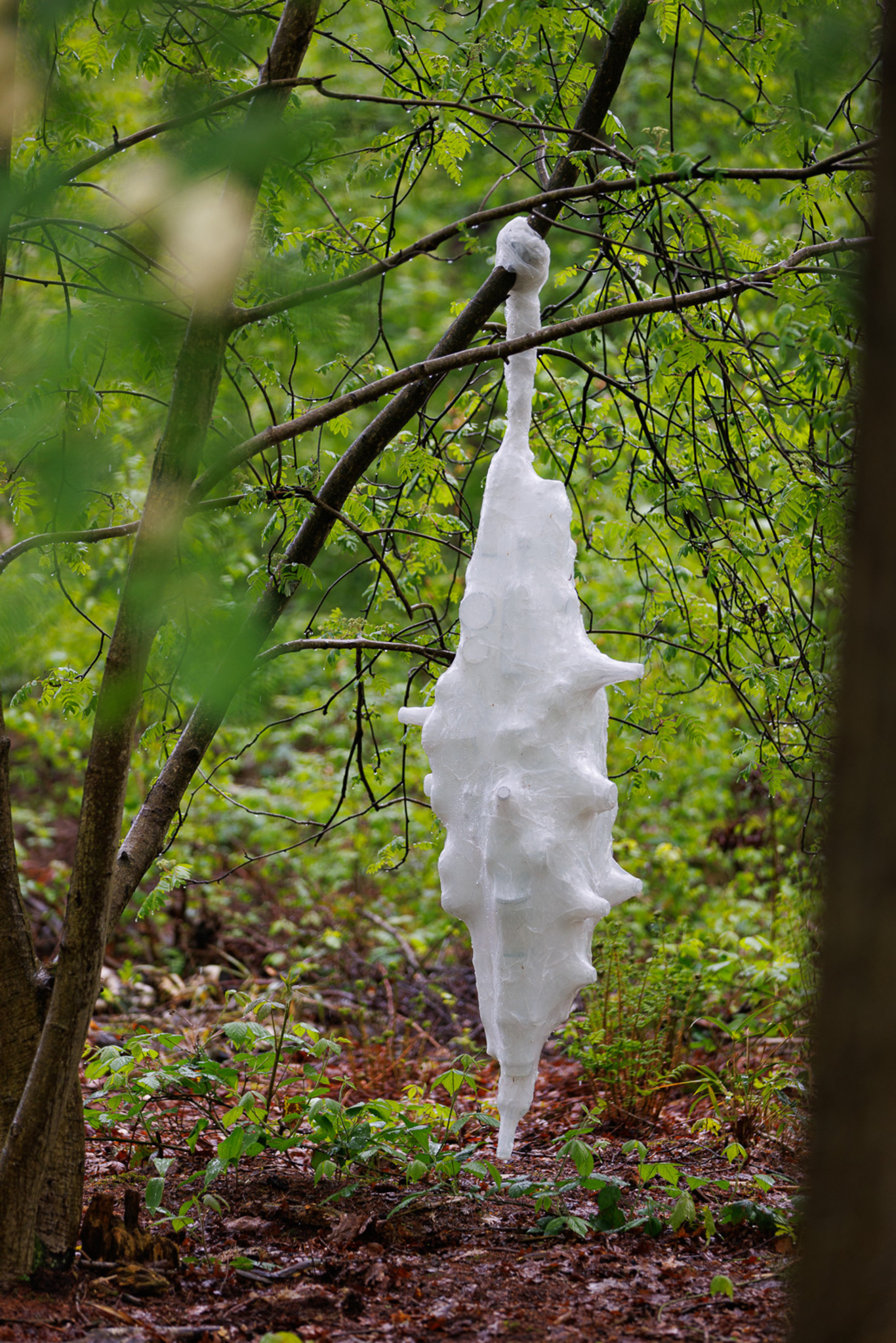 Cocoons; Hanging from trees like fruits of an apocalyptic landscape of out-of-control consumer rage.