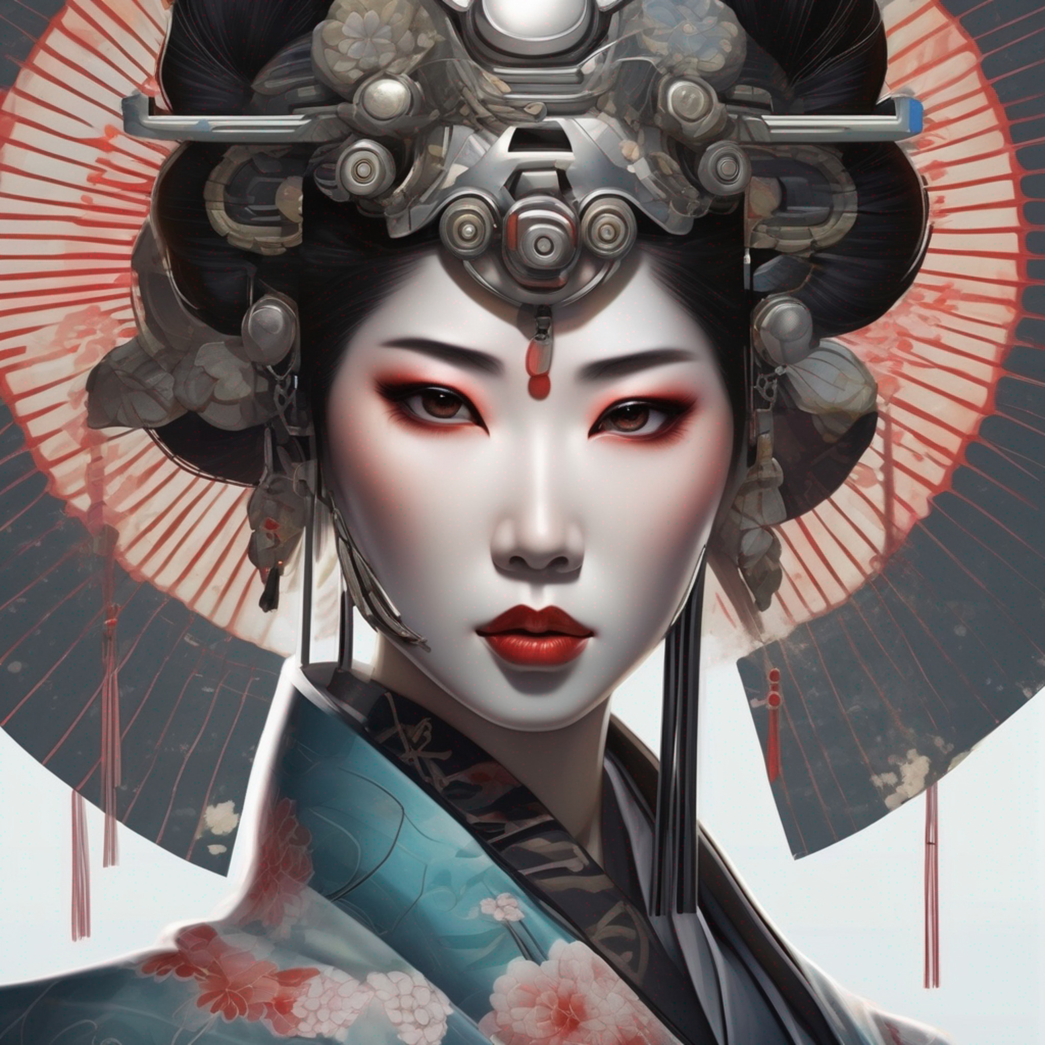 realistic detailed face portrait of handsome futuristic geisha