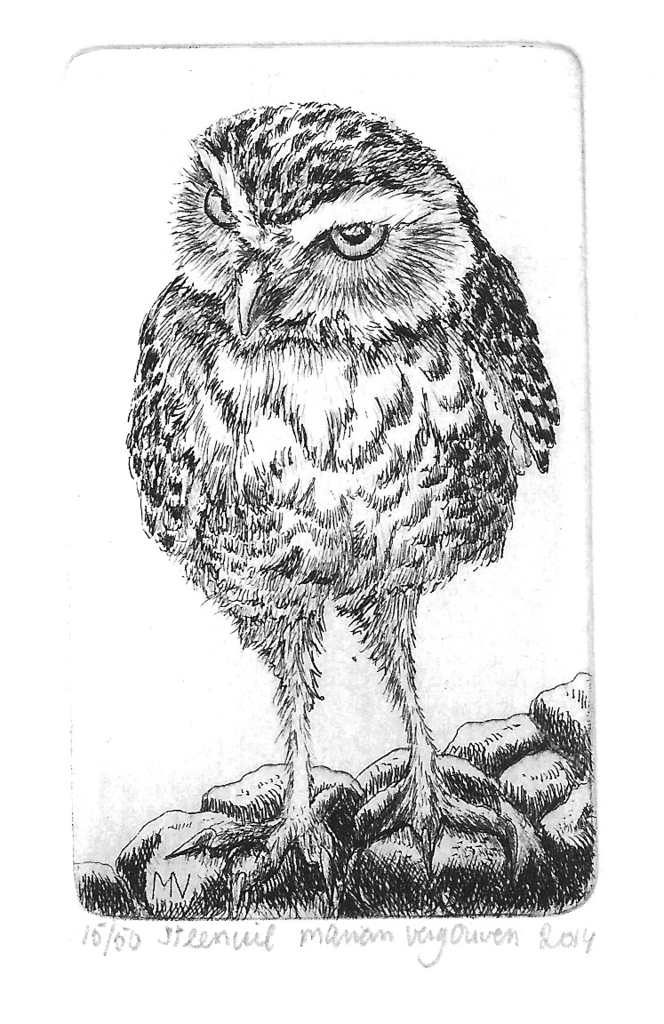 Steenuil klein - oplage 50 exclusief lijst