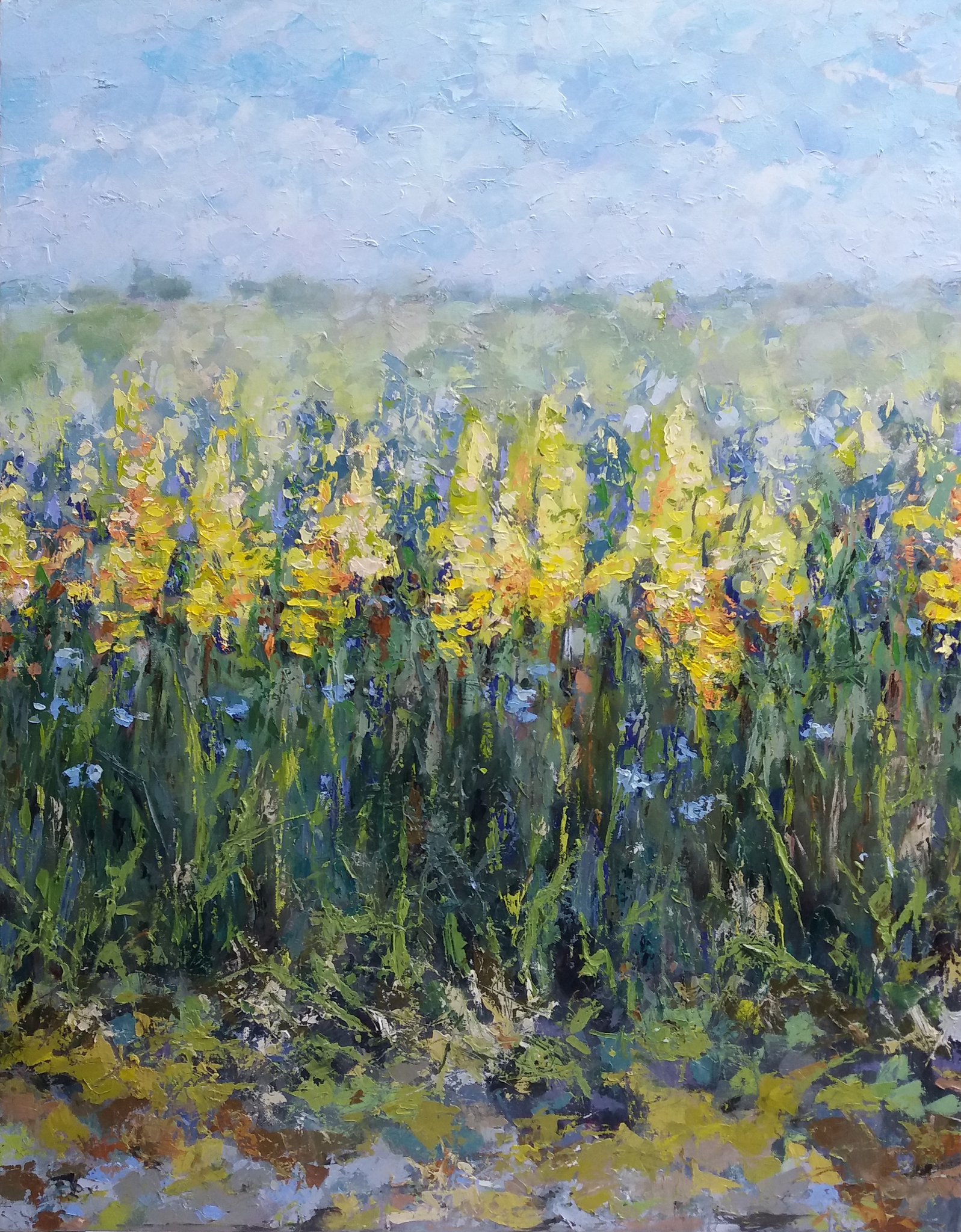 Oranje Geel Bloemen Kleurrijk Olieverf Natuur Vrolijk Verjaardag Impressionistisch Pasteus Bloemenveld