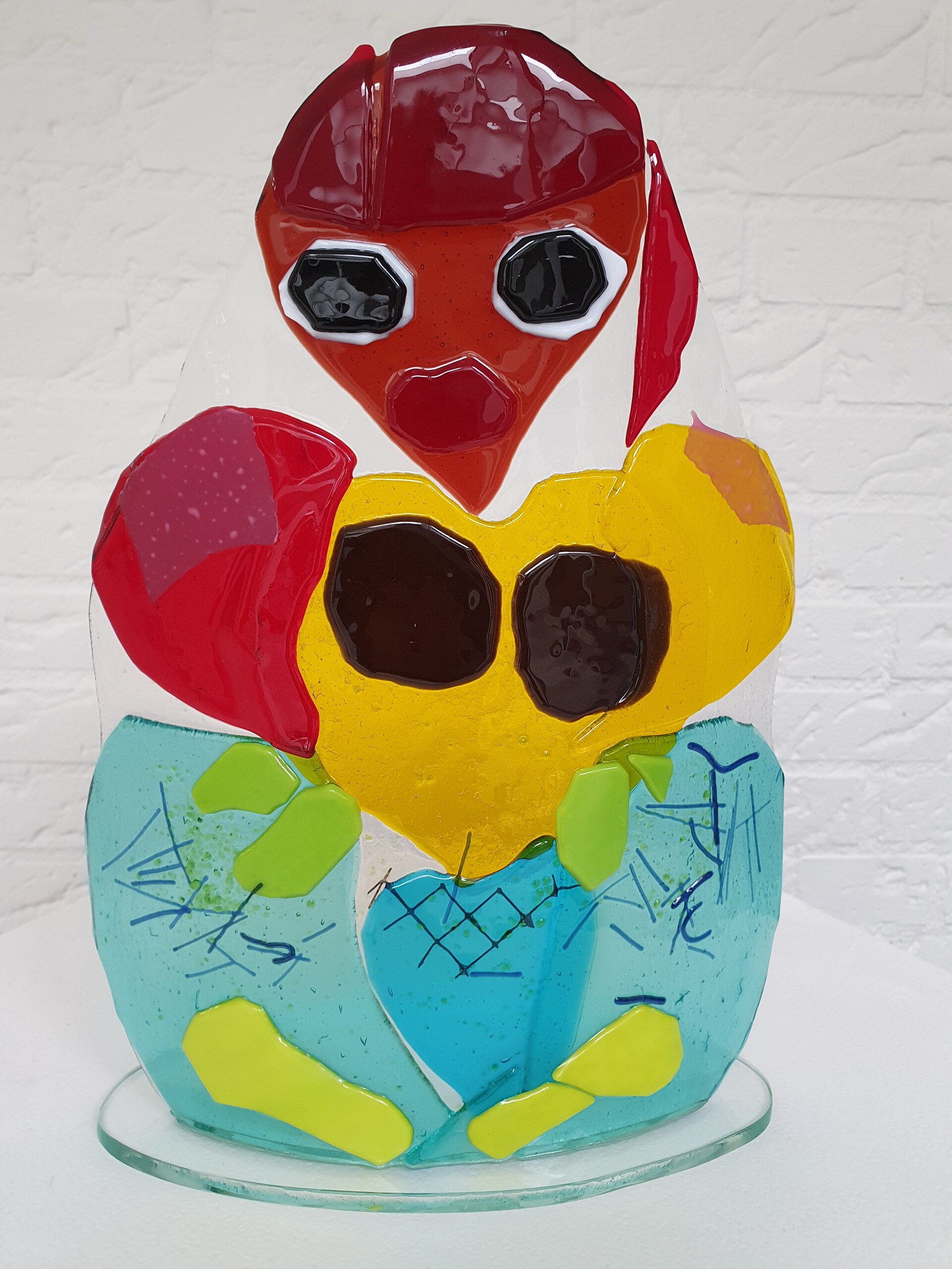 Gallery Sentiments, 7 rue Guénégaud, Paris. Group Exhibition July 2th-5th, 2023 Bikkel - Curacao Mama - Red and Yellow Arm - glass and metal - 40x30x12cm - 2021