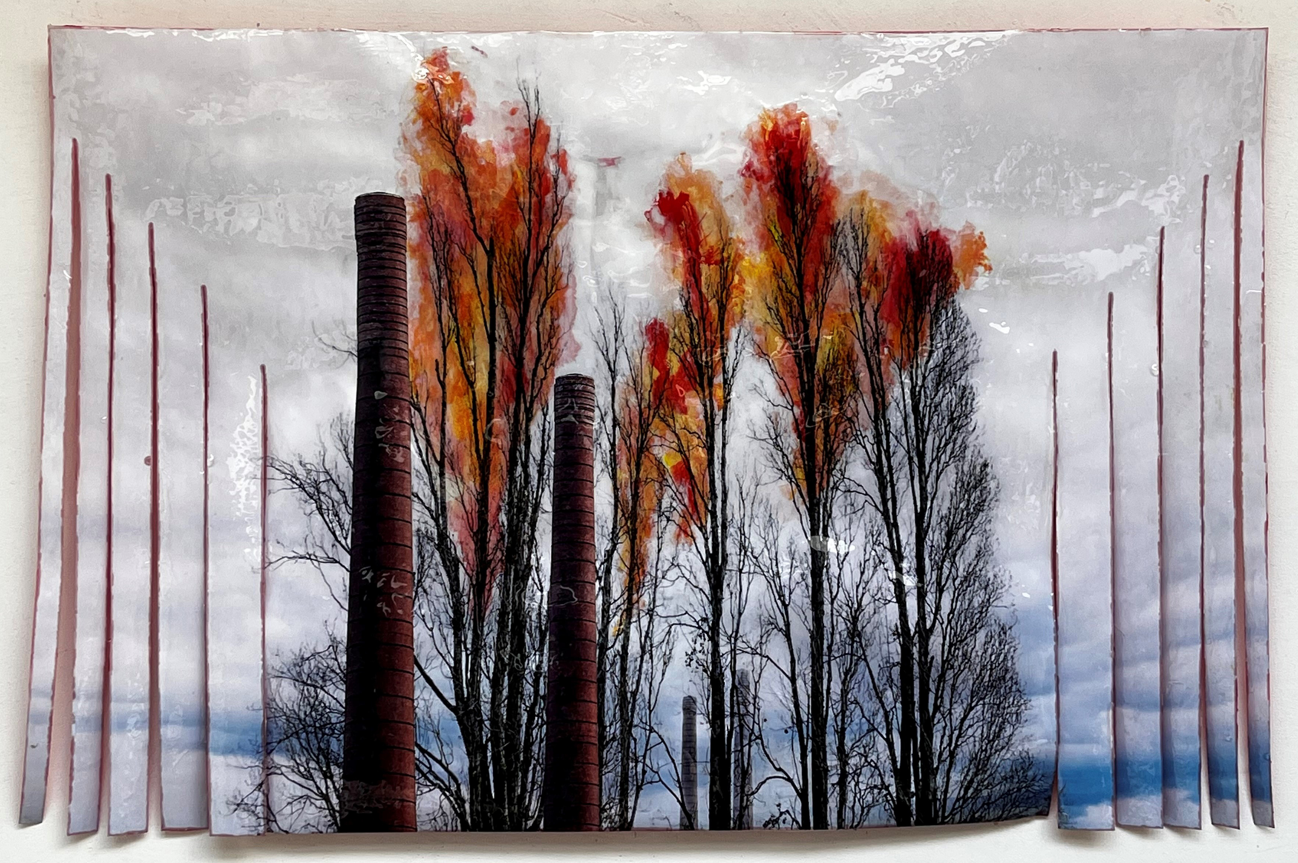 Schilderijen als wandelingen in een fictief landschap: natuurelementen die op elkaar inspelen, al dan niet met menselijke ingrepen.