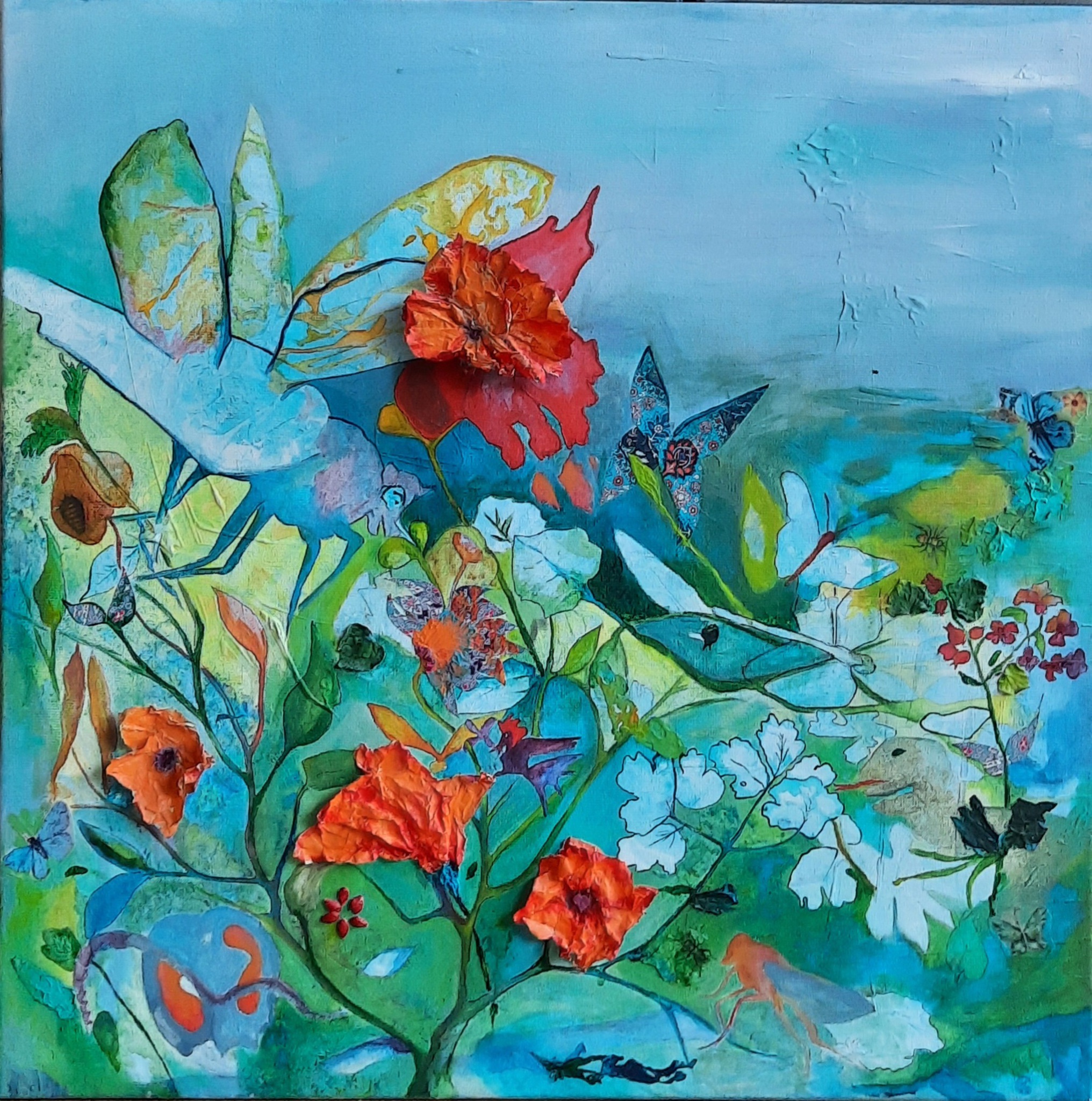 Plantenwereld krijgt een nieuw leven. Van mixed media, recylen tot up-cyclen. Het werk hangt bij InnoMax BV.