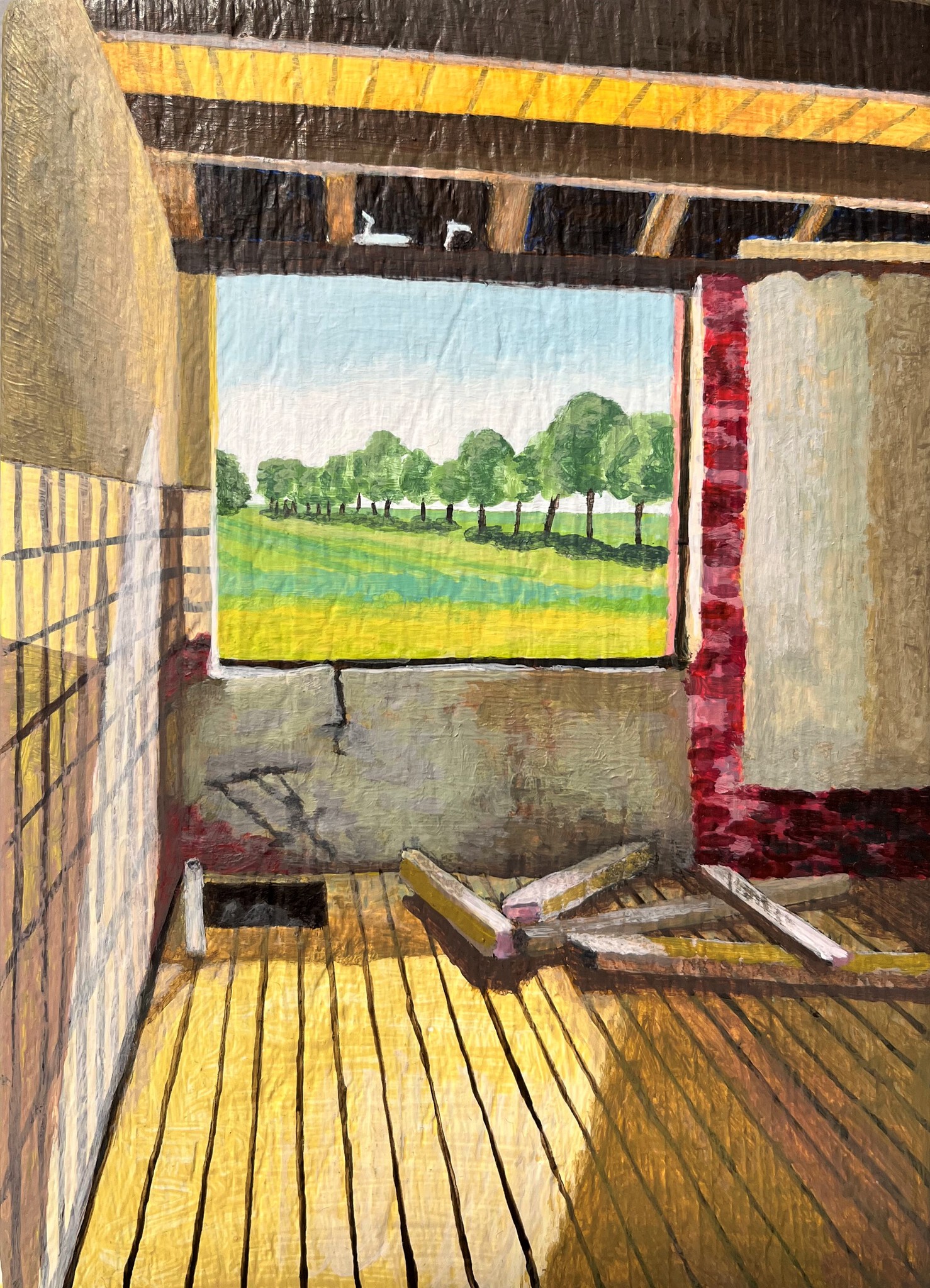Maaike Nijlunsing schildert verval en verlatenheid. Gebouwen in verschillende stadia van ontbinding, van veelal industriële aard, zijn haar onderwerp. Plaatsen waar de mens heeft geheerst en is vertrokken. De sporen van menselijk handelen zijn nog talrijk aanwezig, de mens zelf is verder gegaan, naar iets nieuws. Het gebouw achterlatend, om weer één te worden met de natuur. Vaak zijn het enorme bouwwerken, afgestemd op efficiëntie en productie, met een mens als nietig onderdeeltje daarvan. Maaikes schilderijen nodigen een ieder uit om deze ruimten te ervaren.